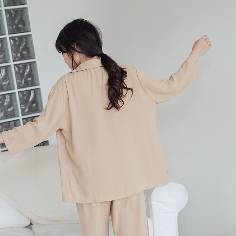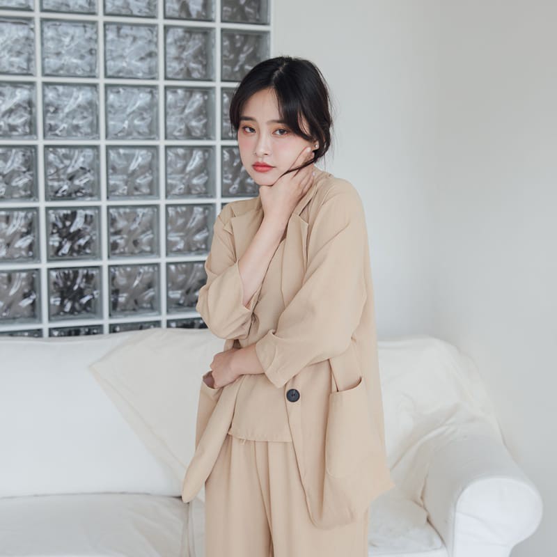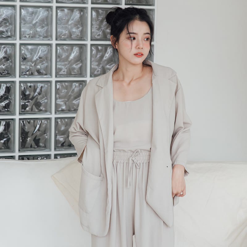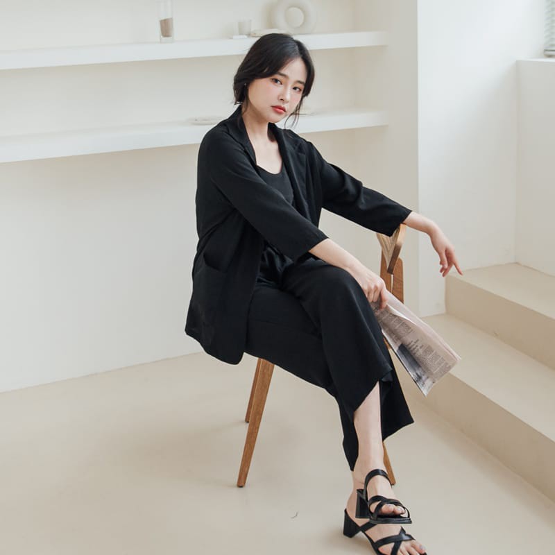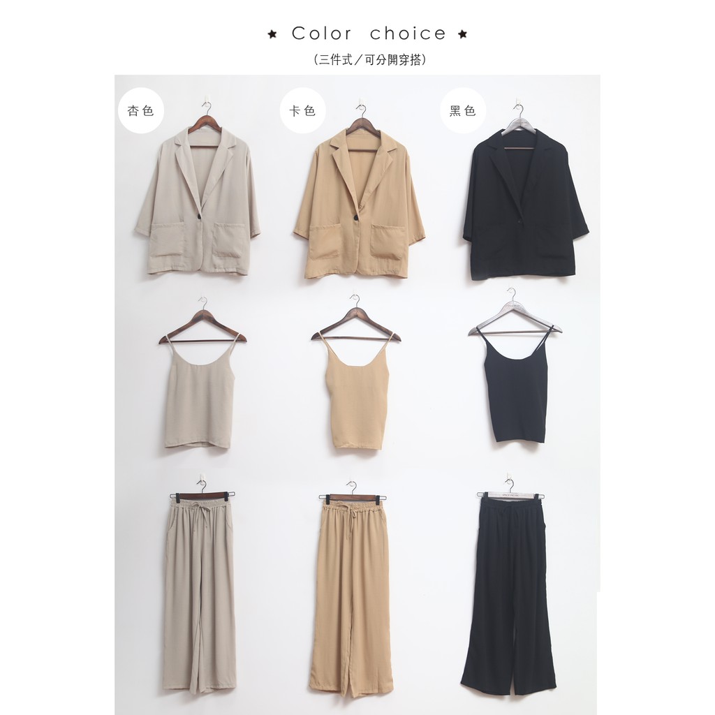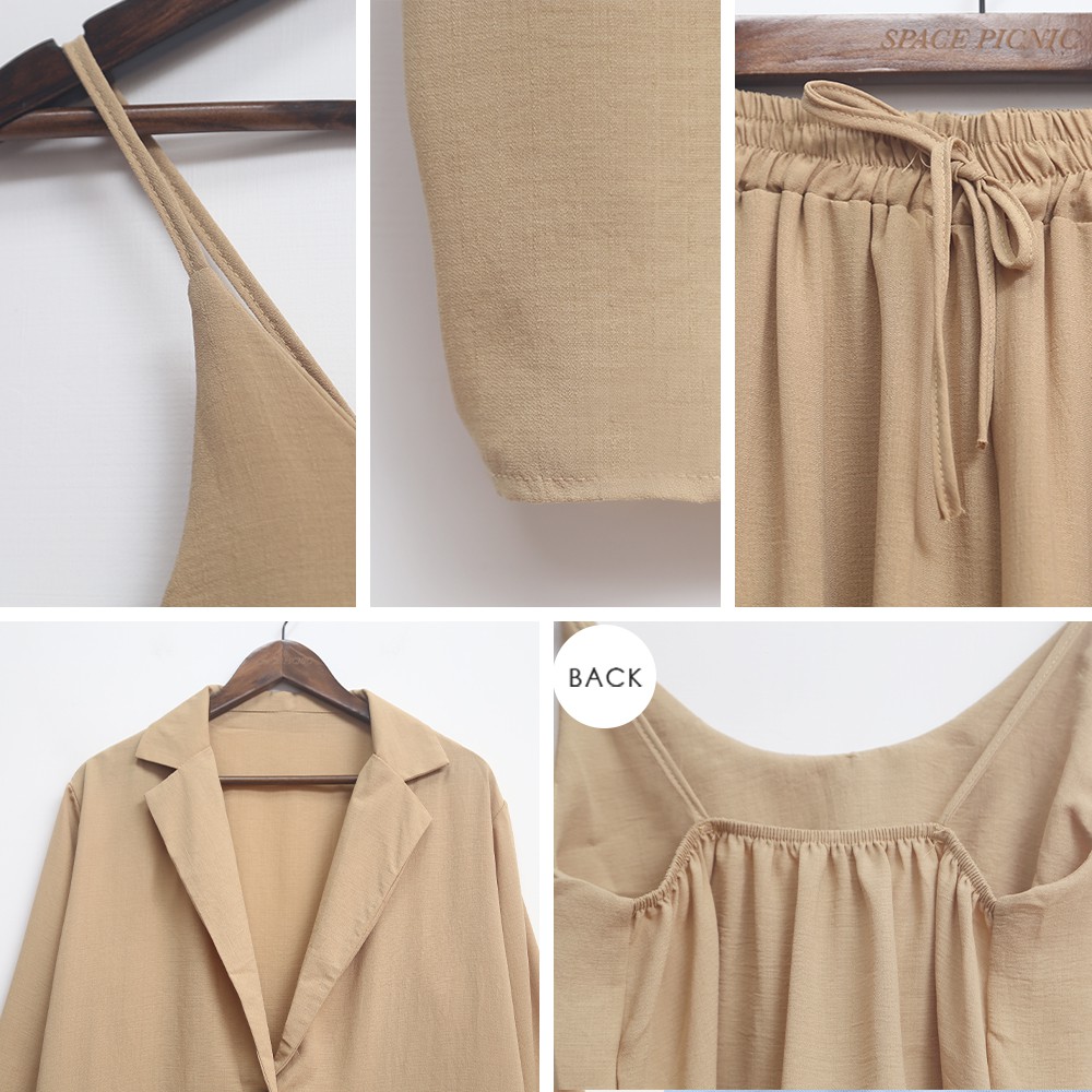 Space Picnic|三件式-細肩棉麻背心+西裝外套+鬆緊長褲【C21042037】