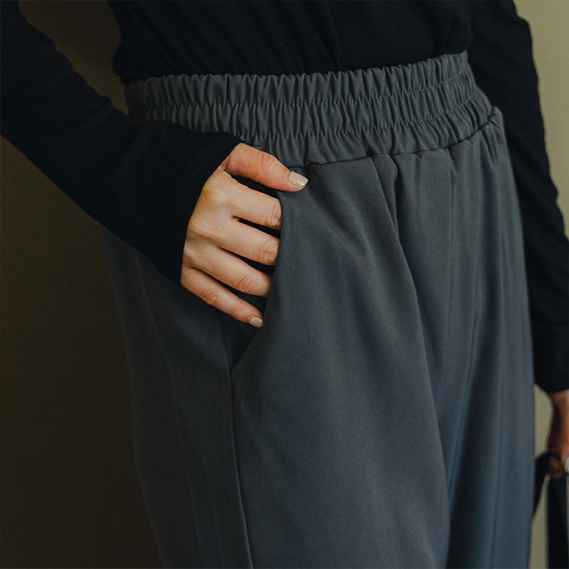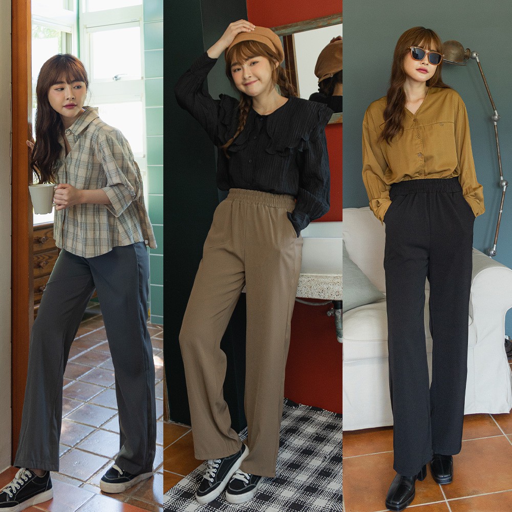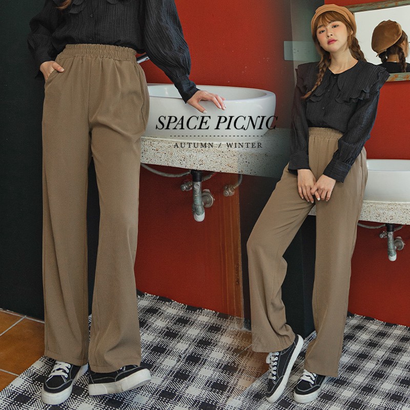 Space Picnic|腰鬆緊滑料寬褲-3色【C21082046】