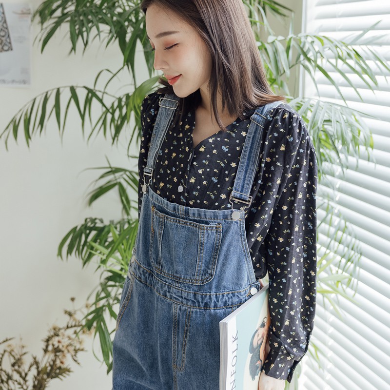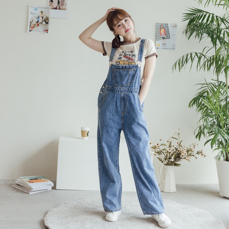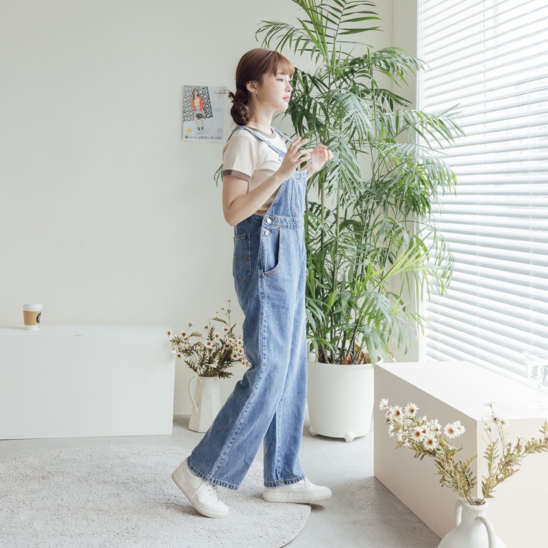 Space Picnic|前口袋牛仔吊帶褲-1色【C21073097】