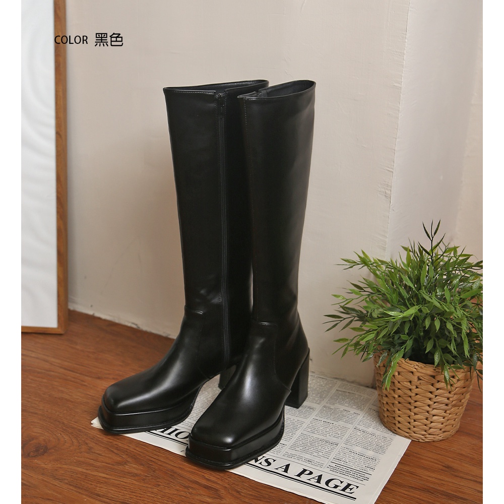 Space Picnic|正韓-粗跟皮革長靴-2色【K21104000】