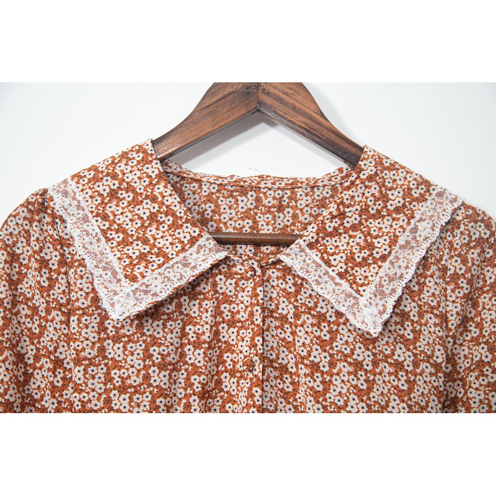 Space Picnic|碎花蕾絲翻領洋裝-2色【C21073065】