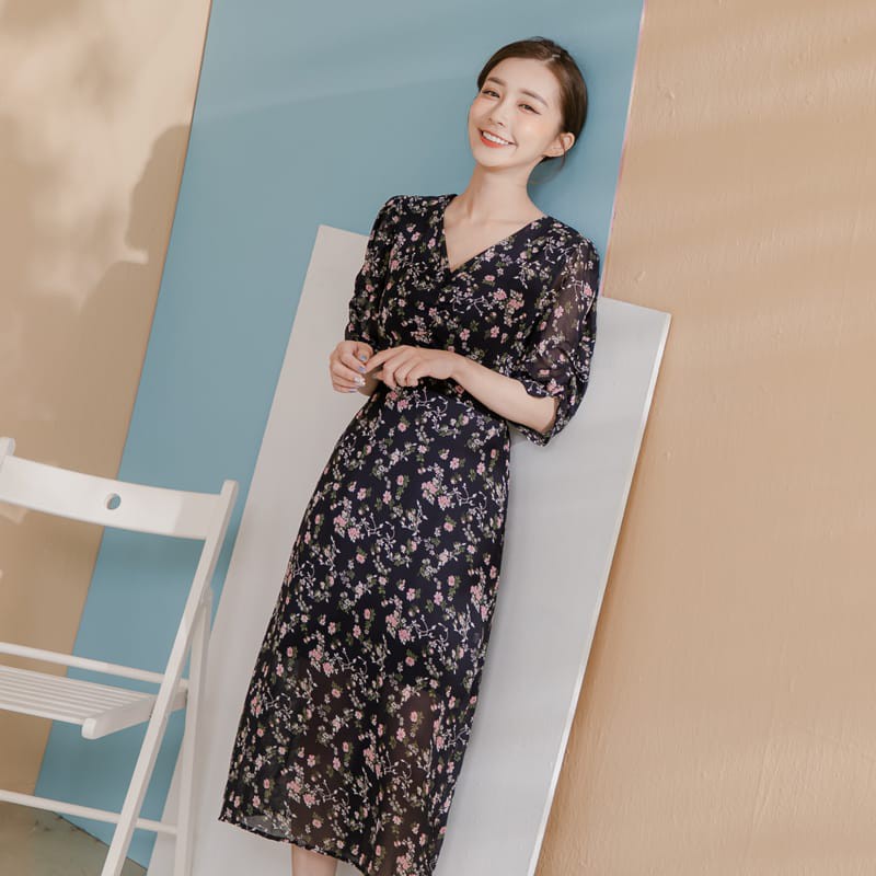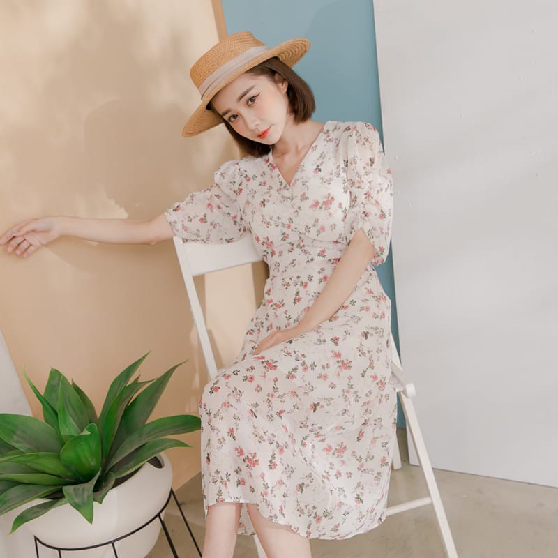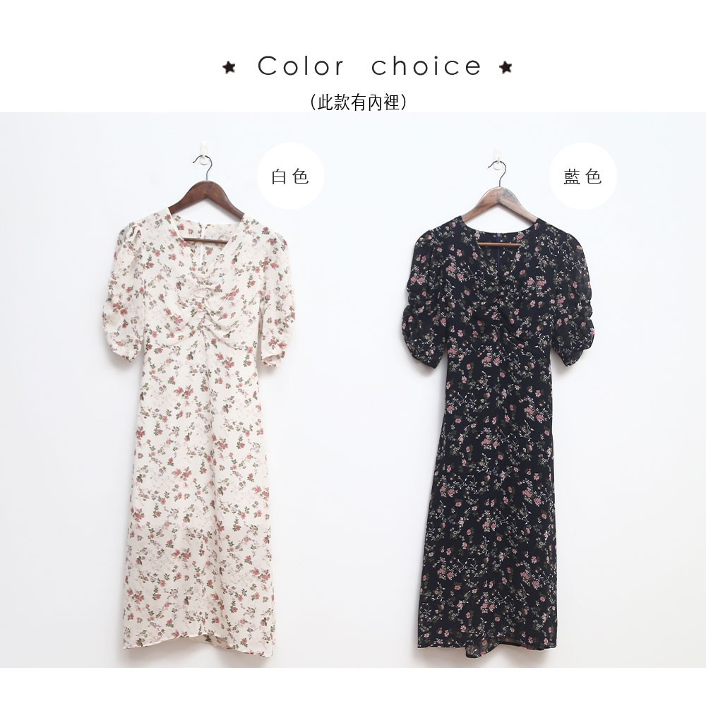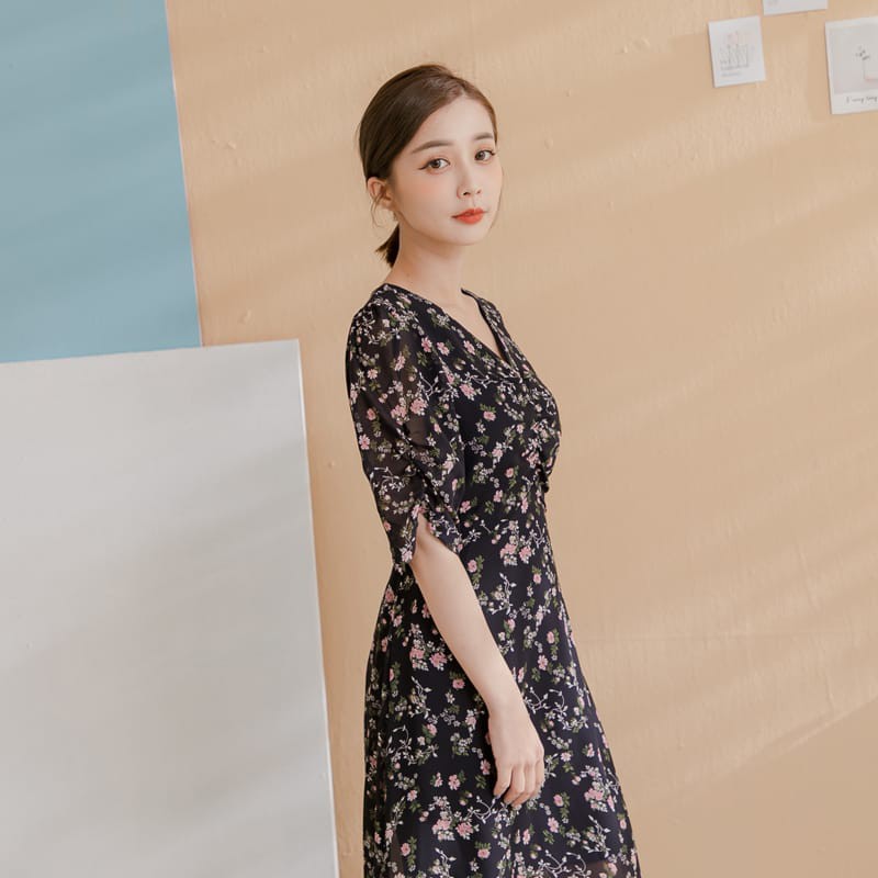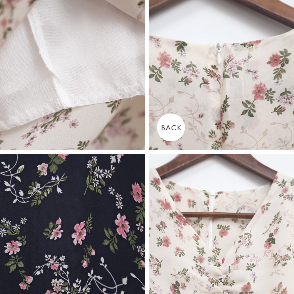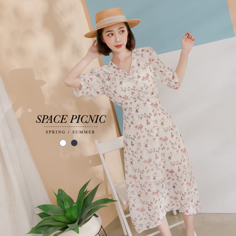Space Picnic|V領碎花後拉鍊雪紡洋裝【C21052065】