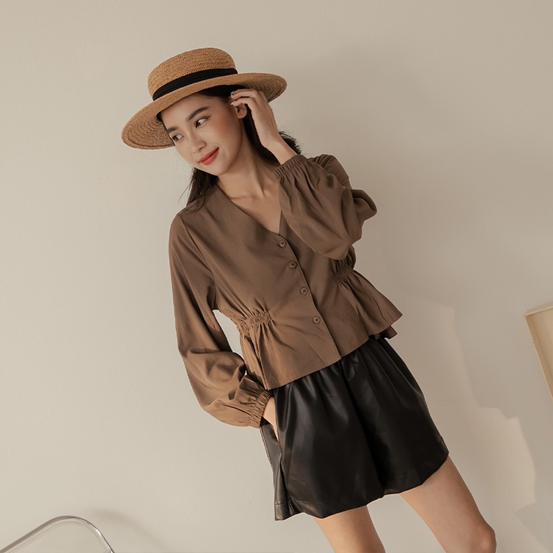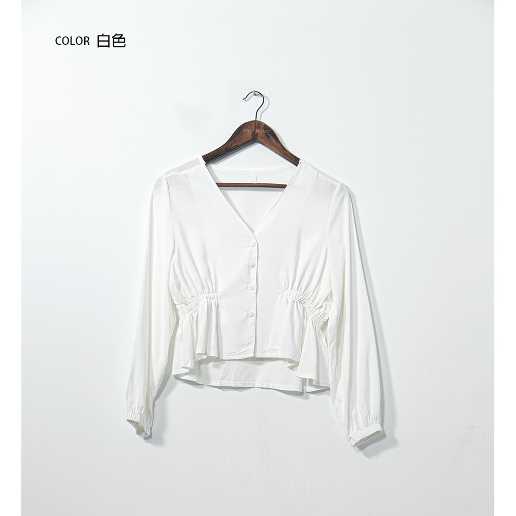 Space Picnic|V領收腰長袖上衣-3色【C21082047】