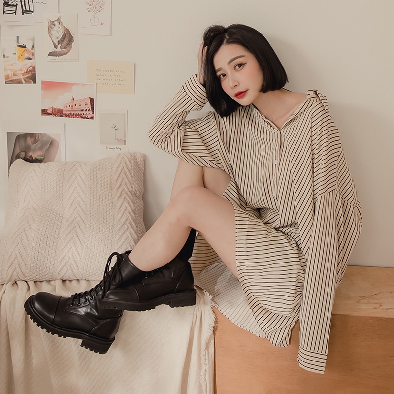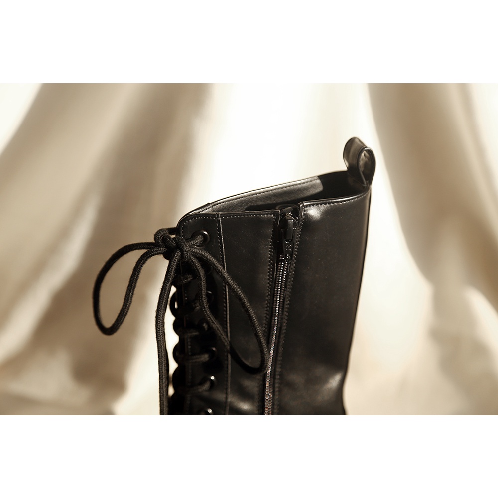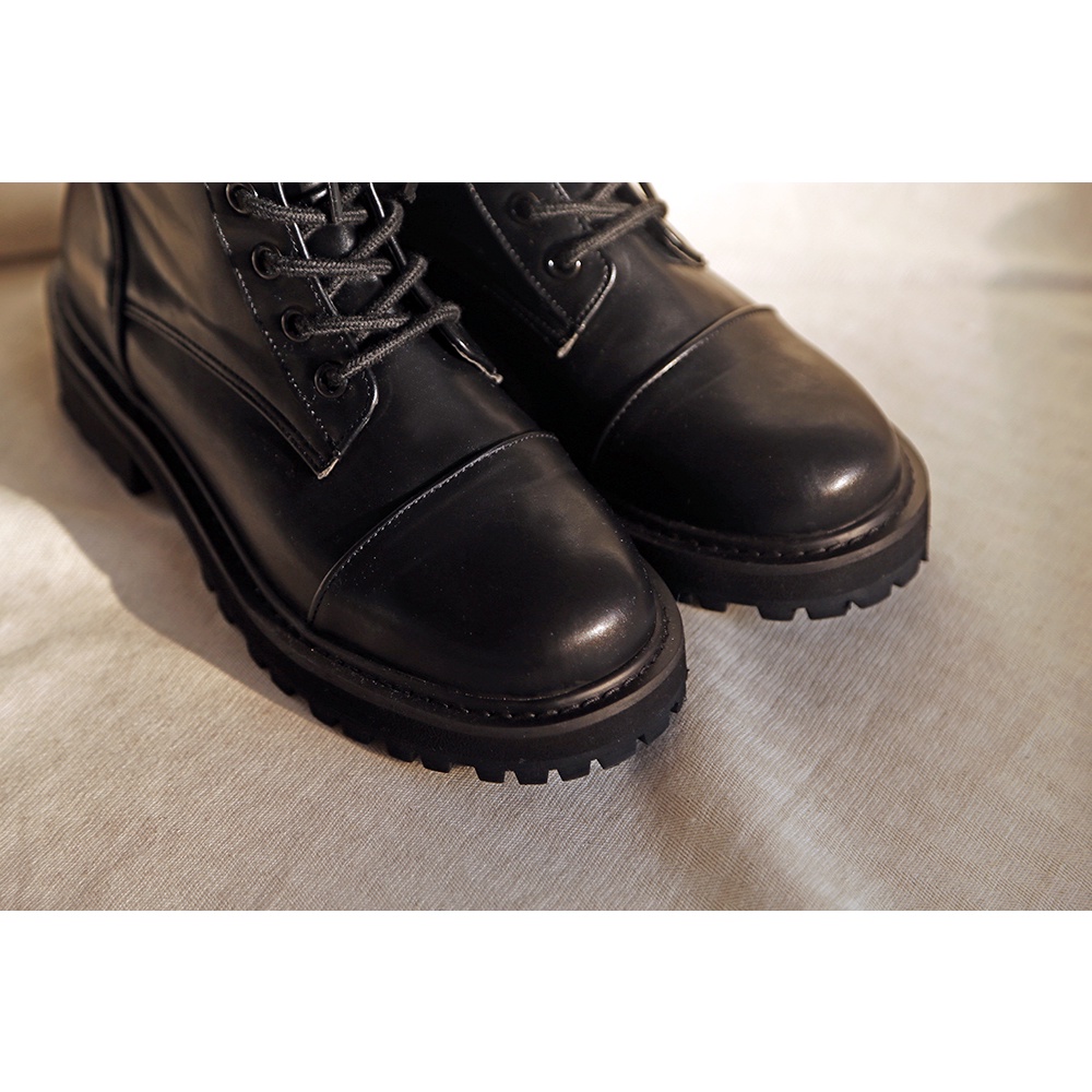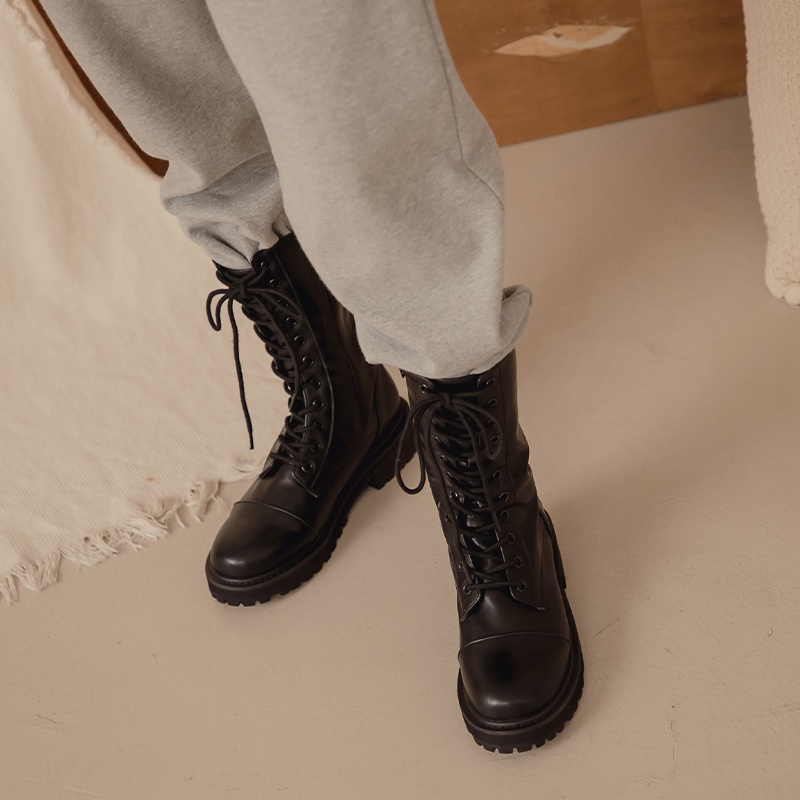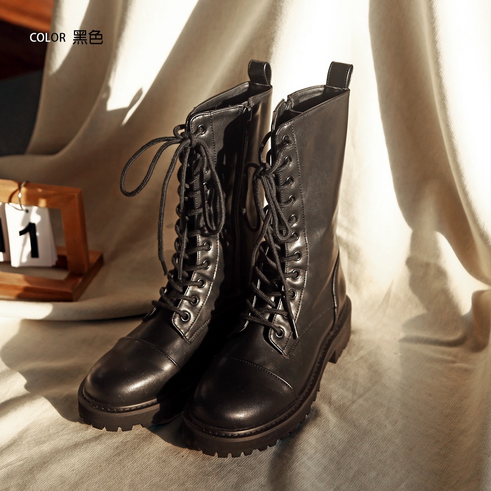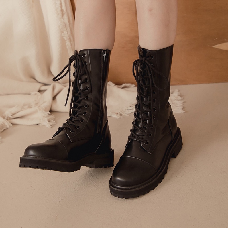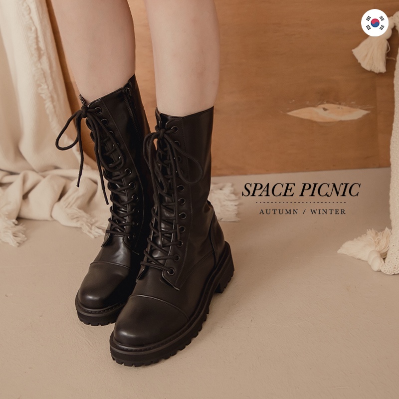 Space Picnic|正韓-圓頭綁帶中筒靴-1色【K21104008】