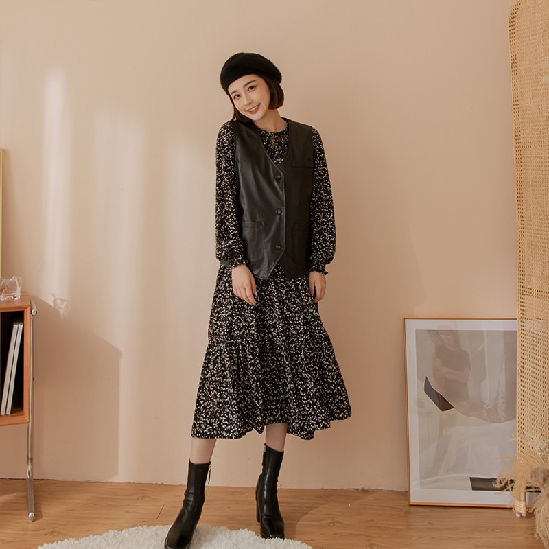 Space Picnic|碎花綁帶長袖洋裝-3色【C21073067】