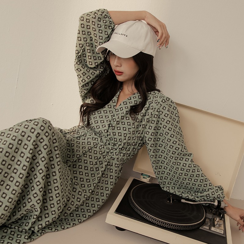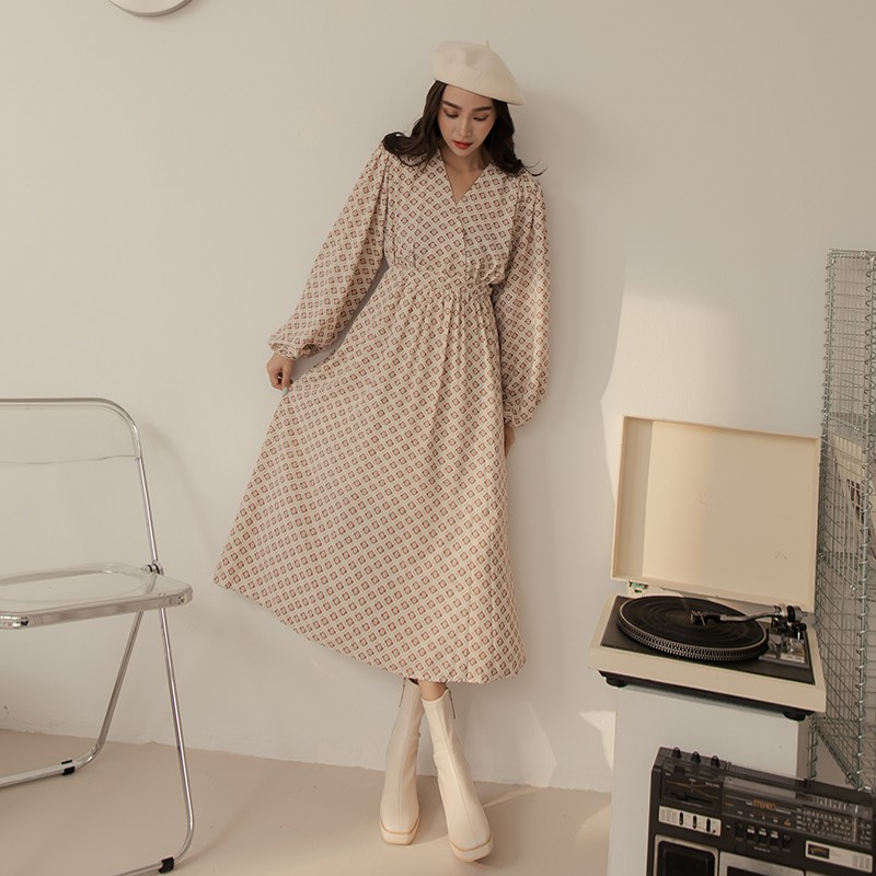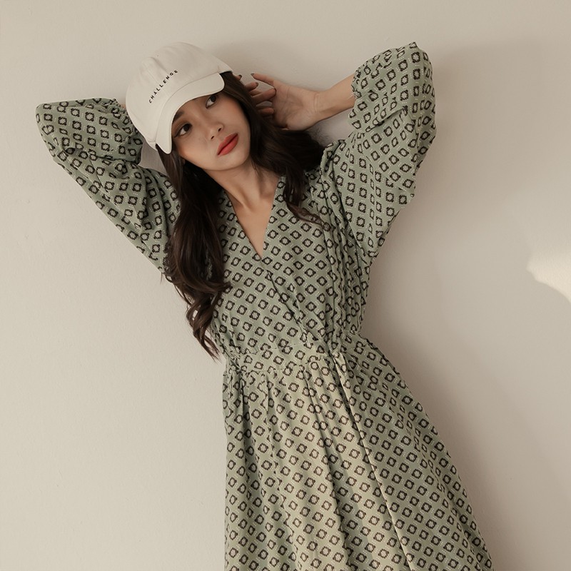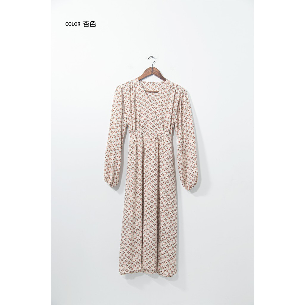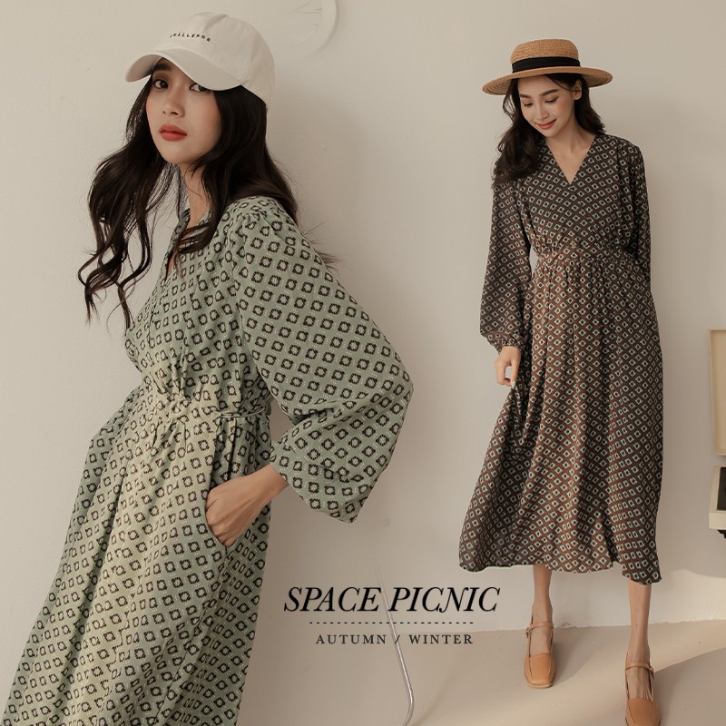 Space Picnic|圖騰V領綁帶洋裝3色【C21082027】