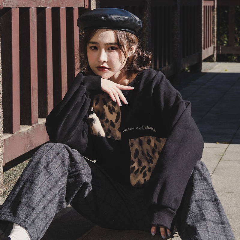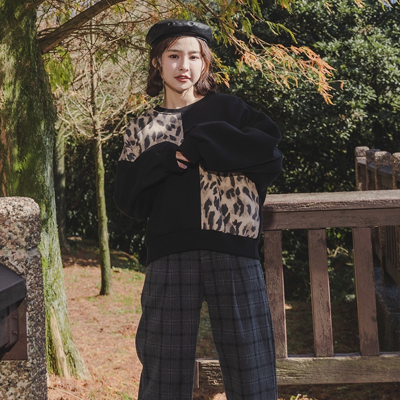Space Picnic|正韓-拼接豹紋刷毛上衣-2色【K21112004】