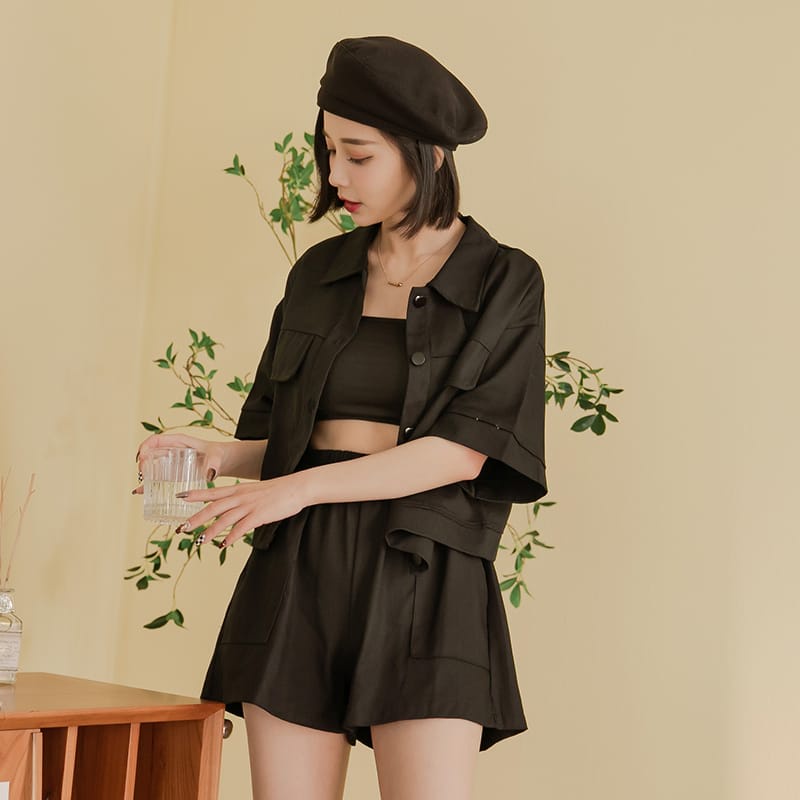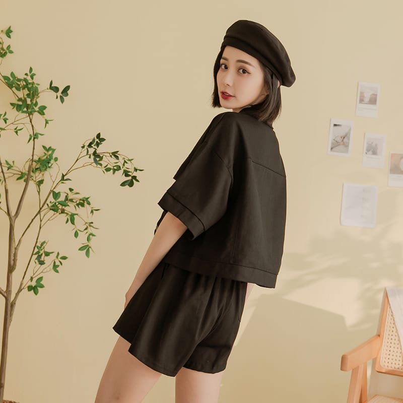 Space Picnic|兩件式-挺版襯衫外套+短褲-2色【C22021015】