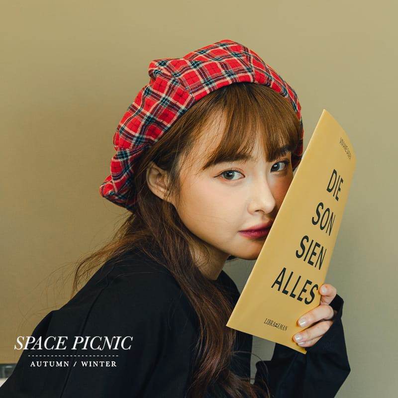 Space Picnic|格紋彈性貝蕾帽-3色【C21083001】
