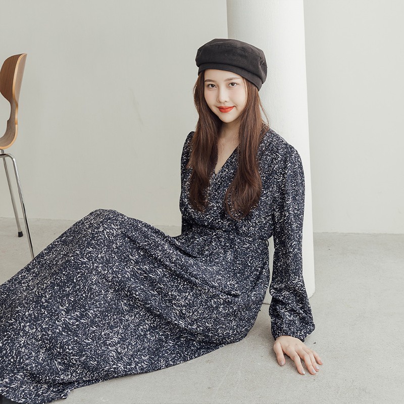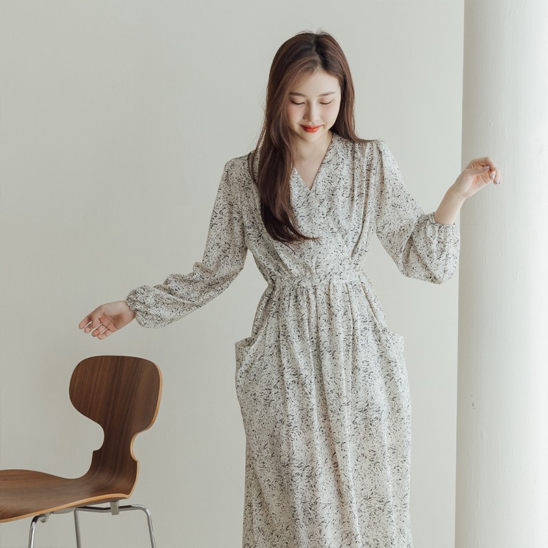 Space Picnic|V領抽繩印花洋裝-2色【C21092010】
