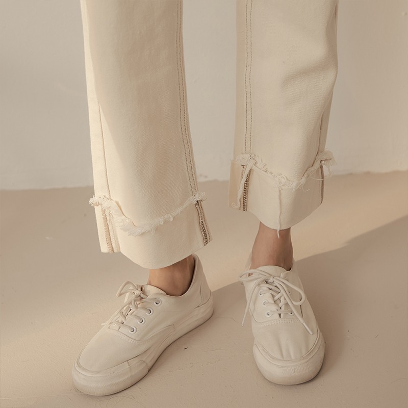 Space Picnic|抽鬚反摺牛仔直筒褲-3色【C21082010】