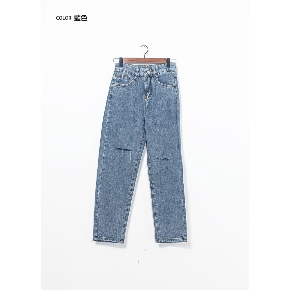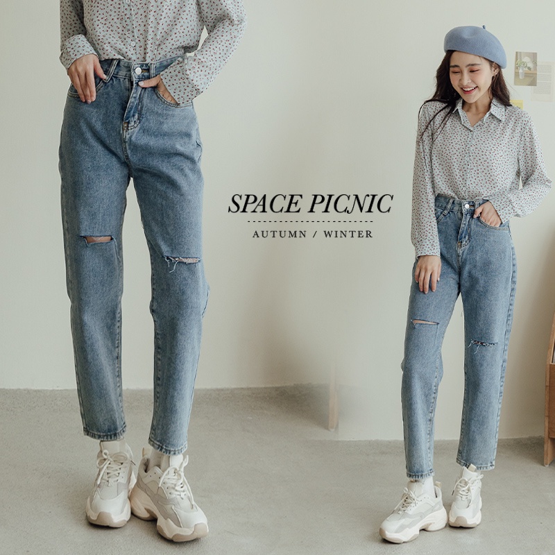 Space Picnic|膝割破牛仔直筒褲-1色【C21102070】