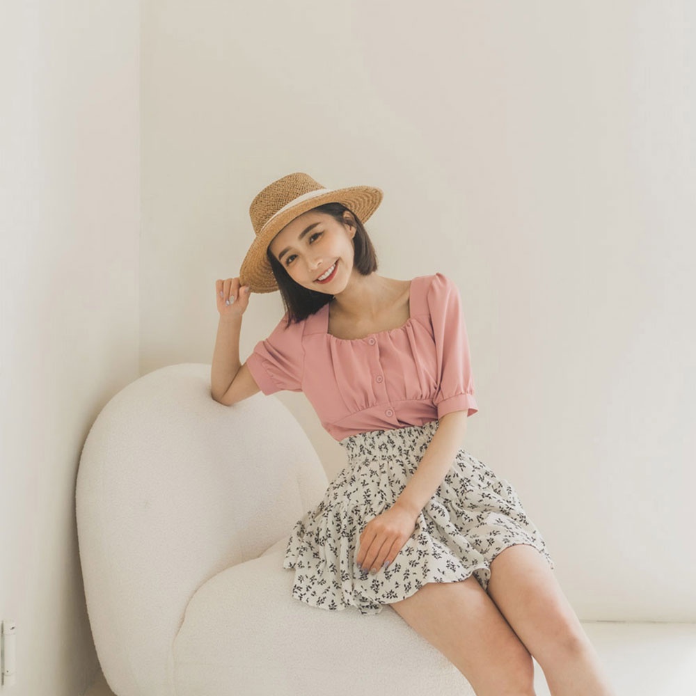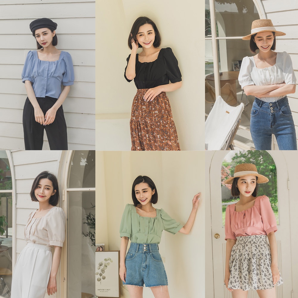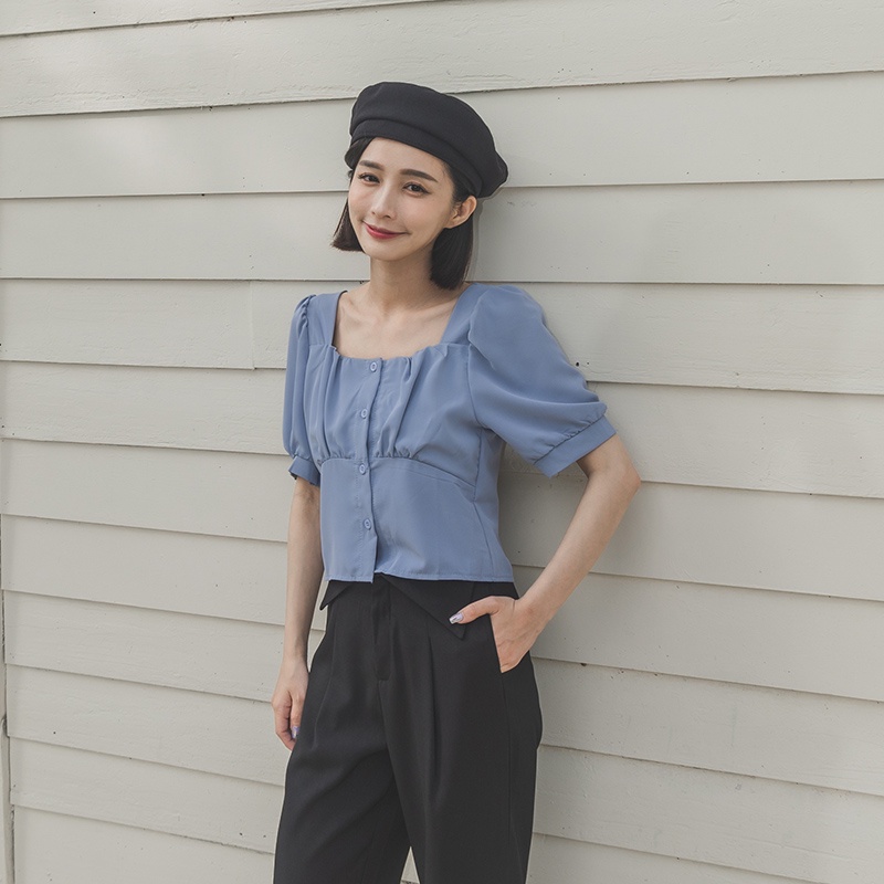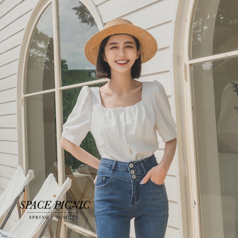 Space Picnic|抓皺方領短上衣-6色【C22031036】