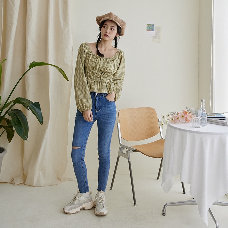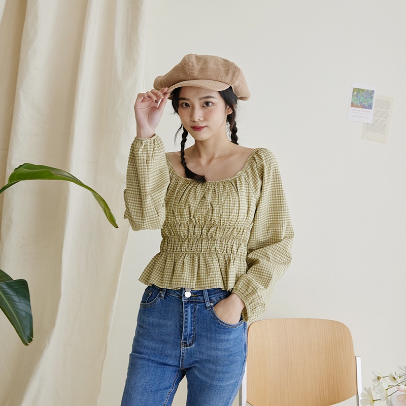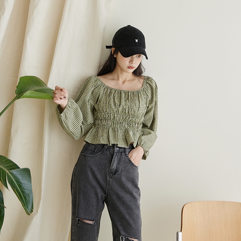 Space Picnic|鬆緊領格紋上衣-4色【C22011018】