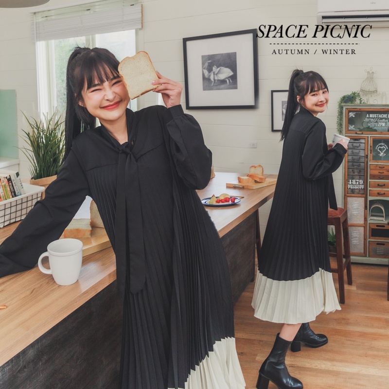Space Picnic|領綁繩百摺洋裝-2色【C22011057】