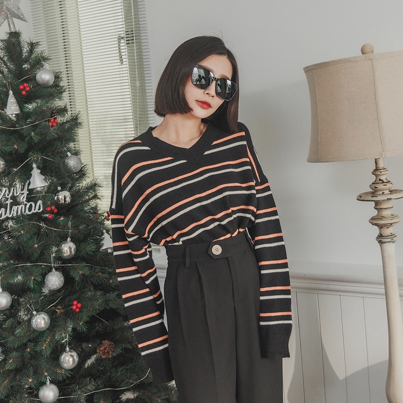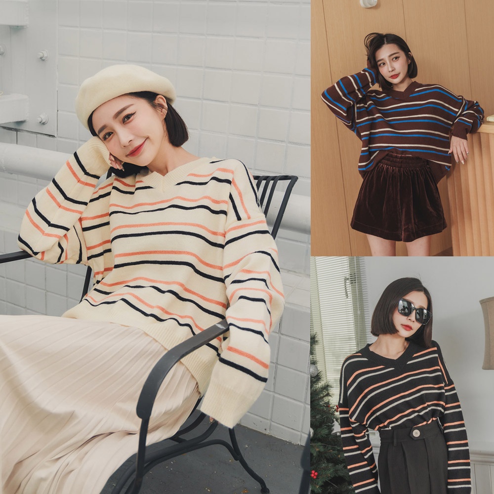 Space Picnic|V領條紋針織上衣-3色【C21122021】