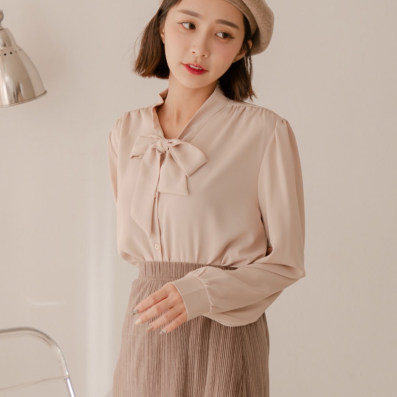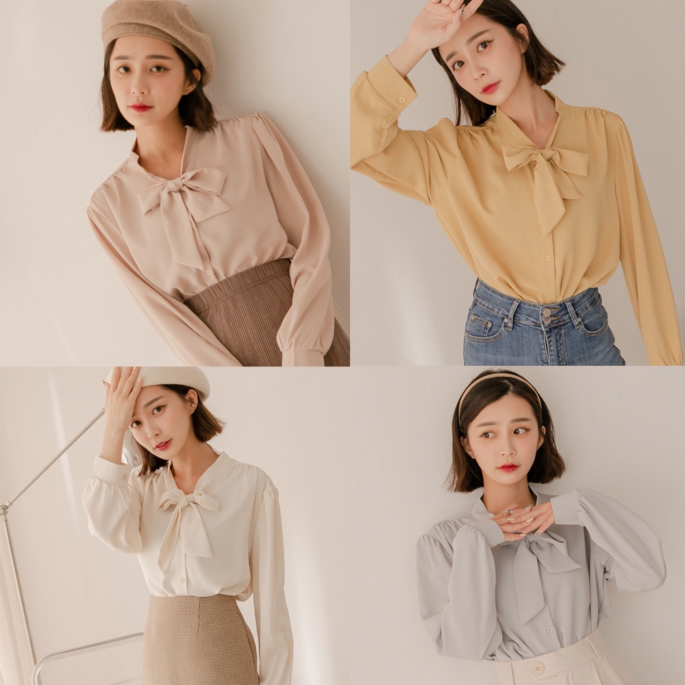 Space Picnic|領綁帶雪紡襯衫-6色【C21122059】