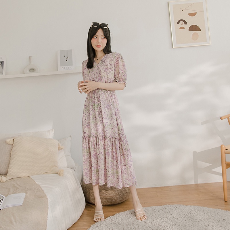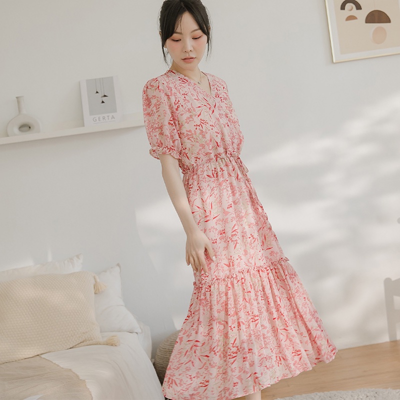 Space Picnic|V領腰抽繩碎花洋裝-2色【C22043015】