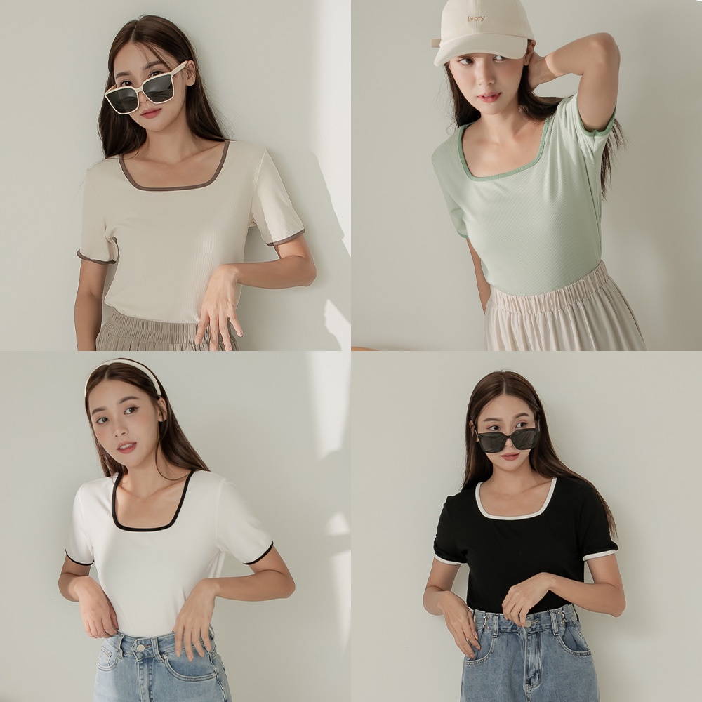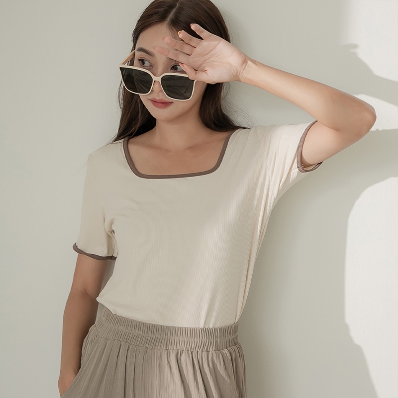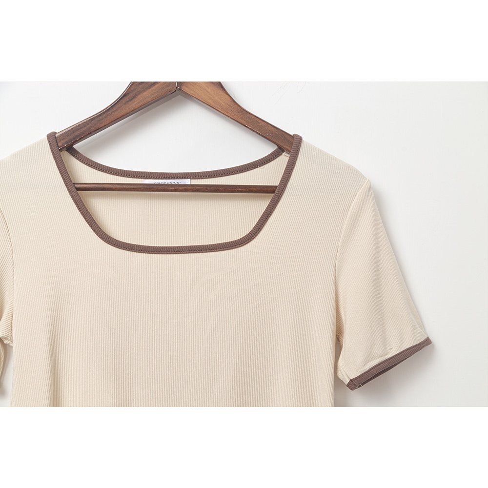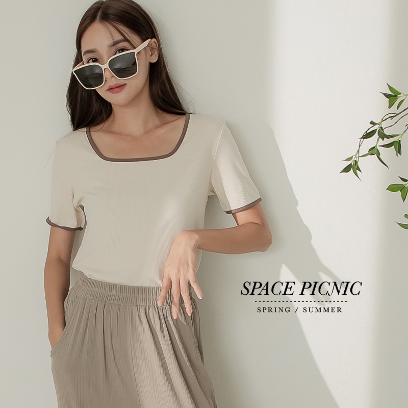 Space Picnic|滾邊方領坑條上衣-4色【C22081012】