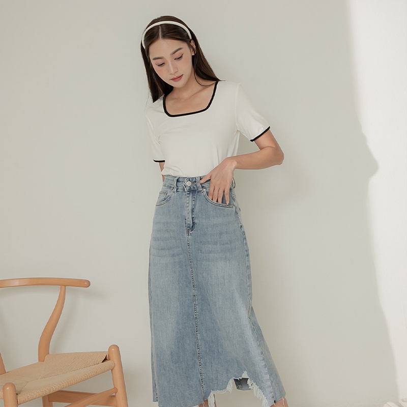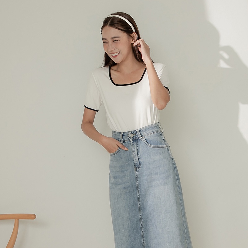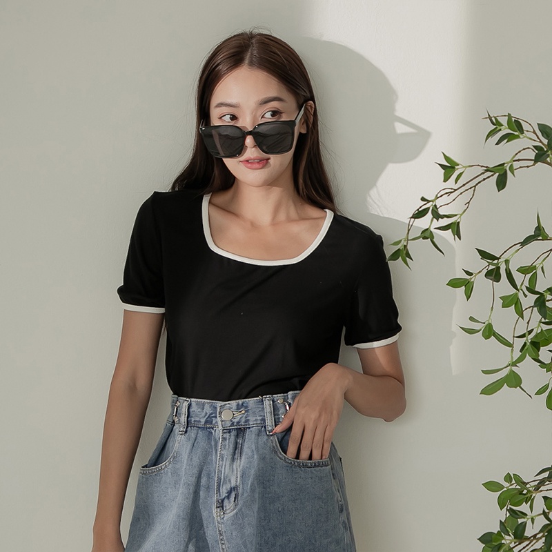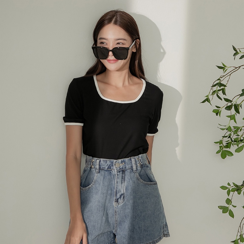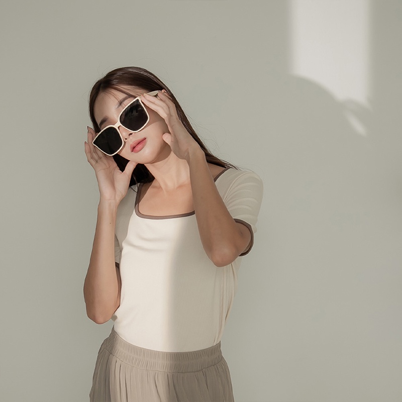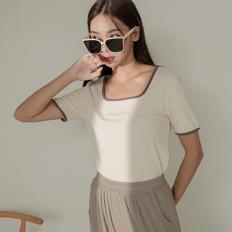 Space Picnic|滾邊方領坑條上衣-4色【C22081012】