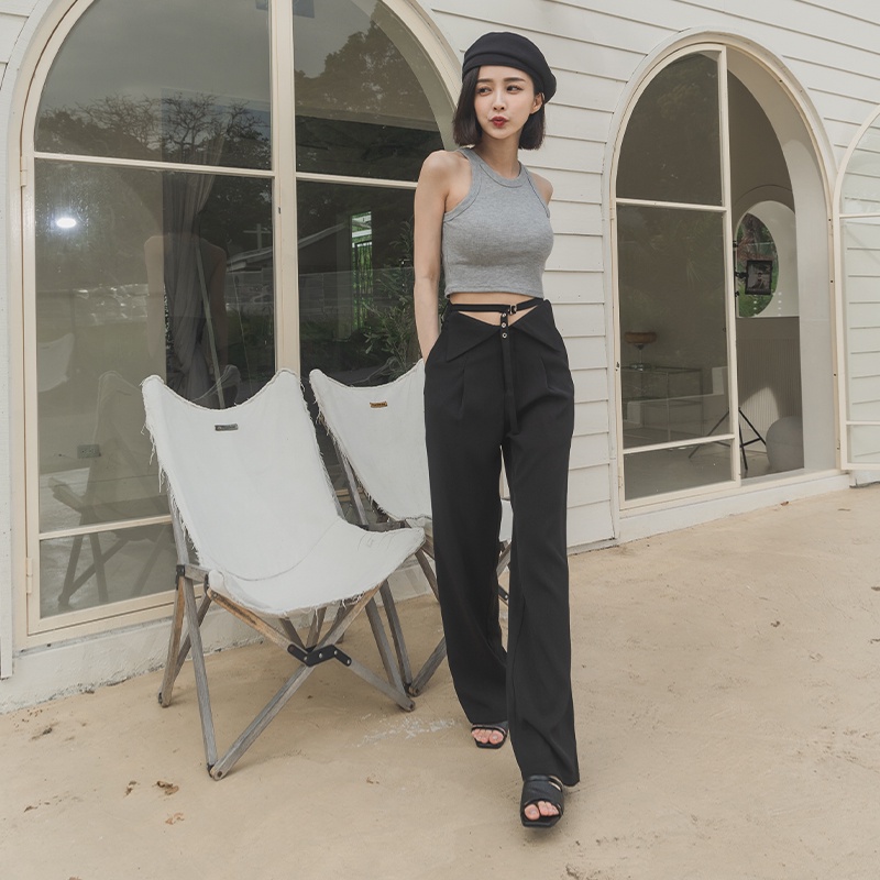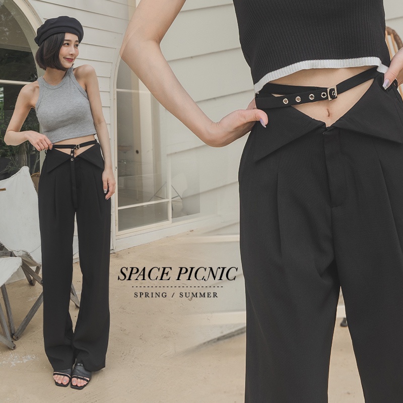 Space Picnic|綁帶翻褲頭造型寬褲-1色【C22031027】