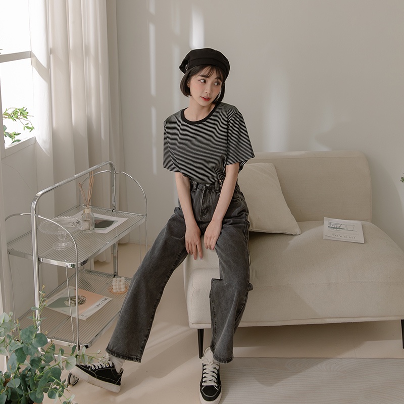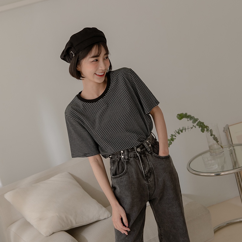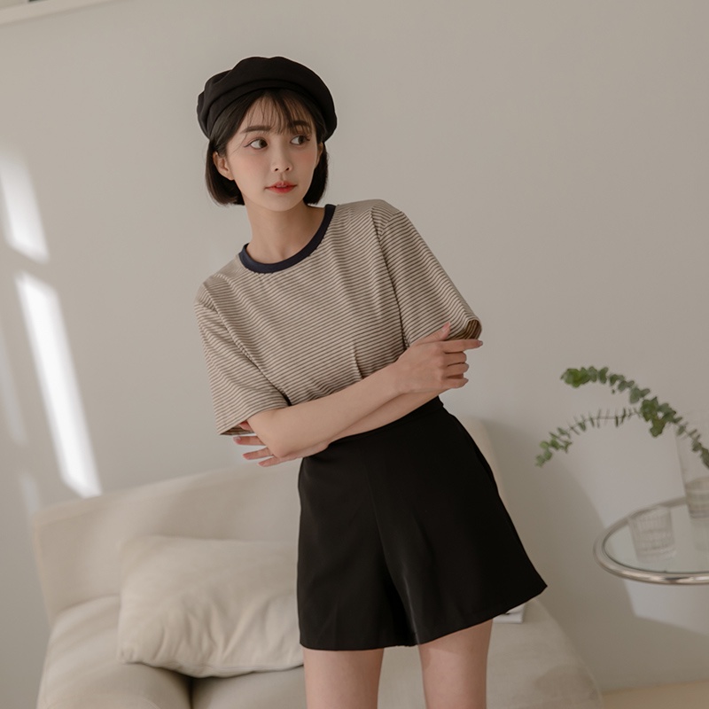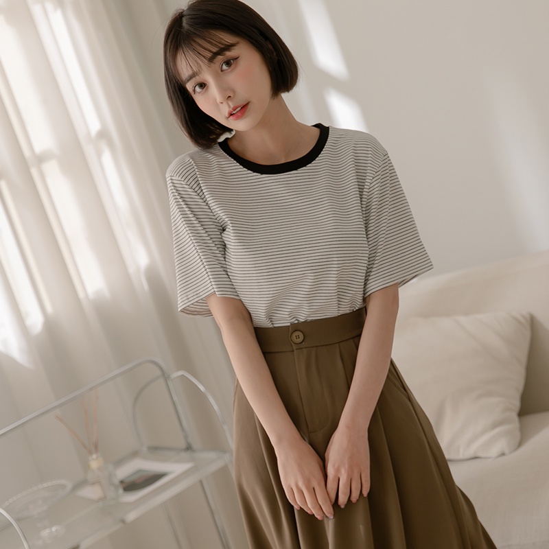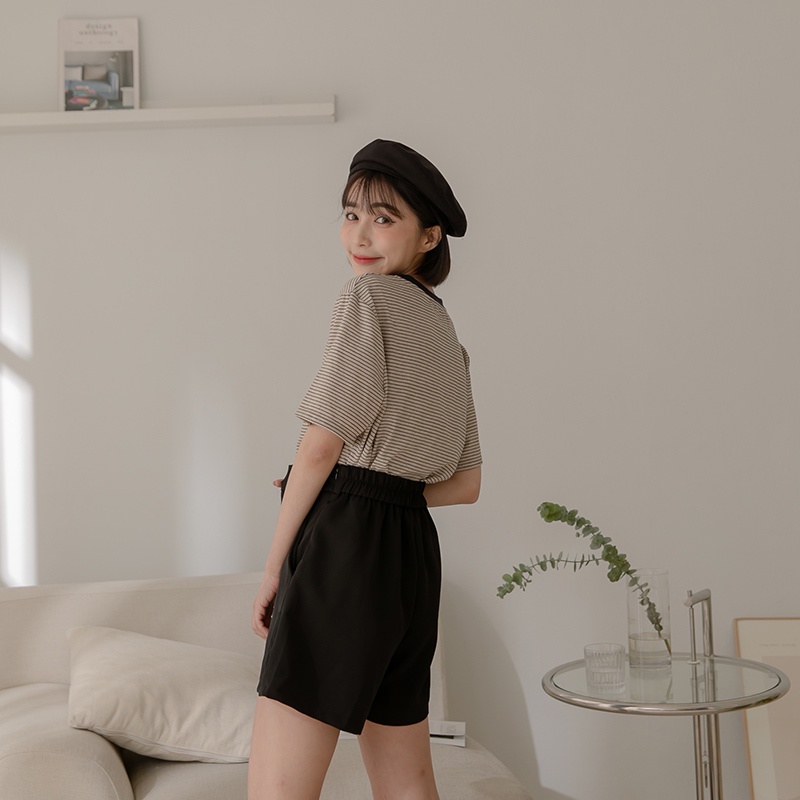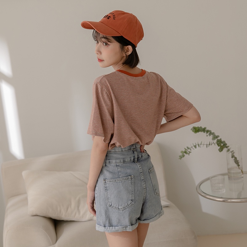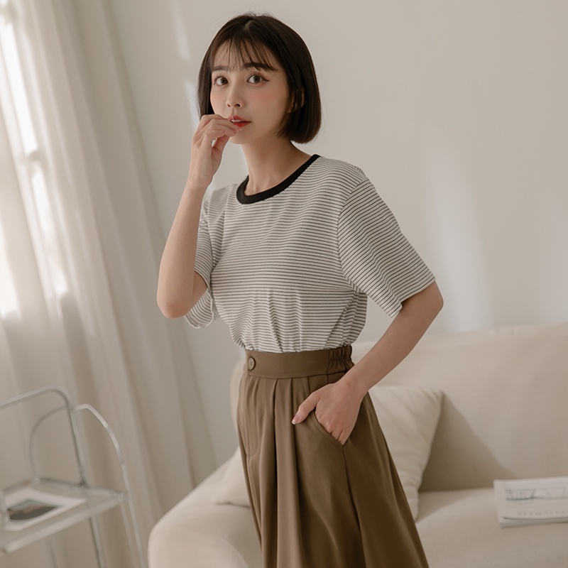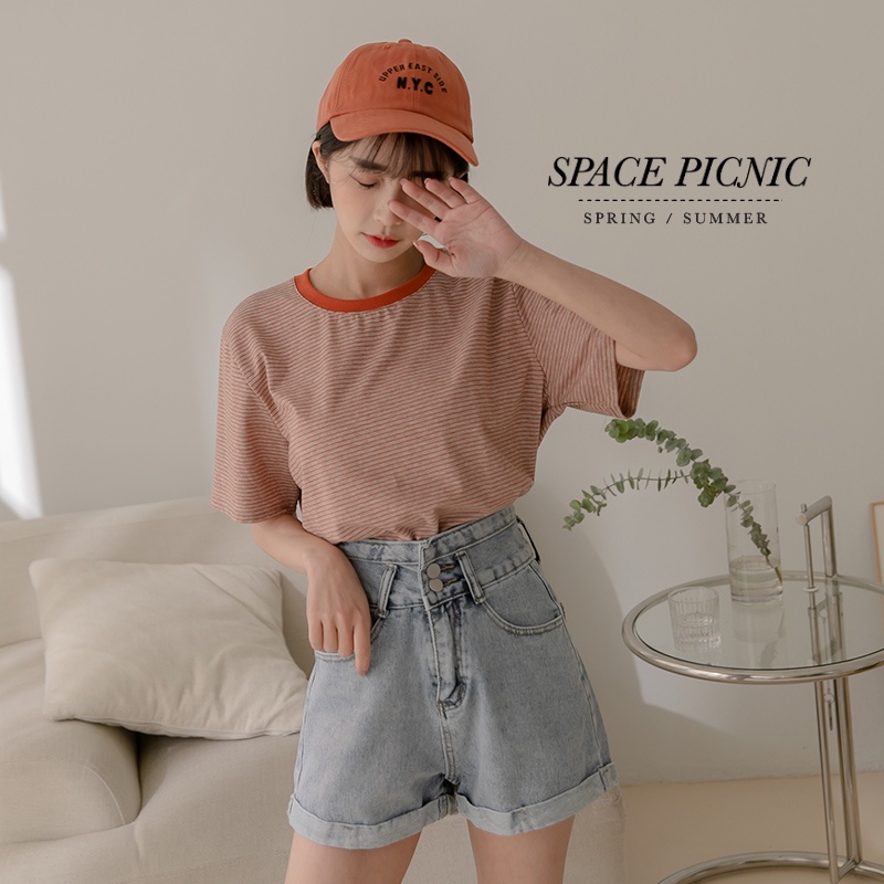 Space Picnic|滾邊條紋短袖上衣-4色【C22031075】