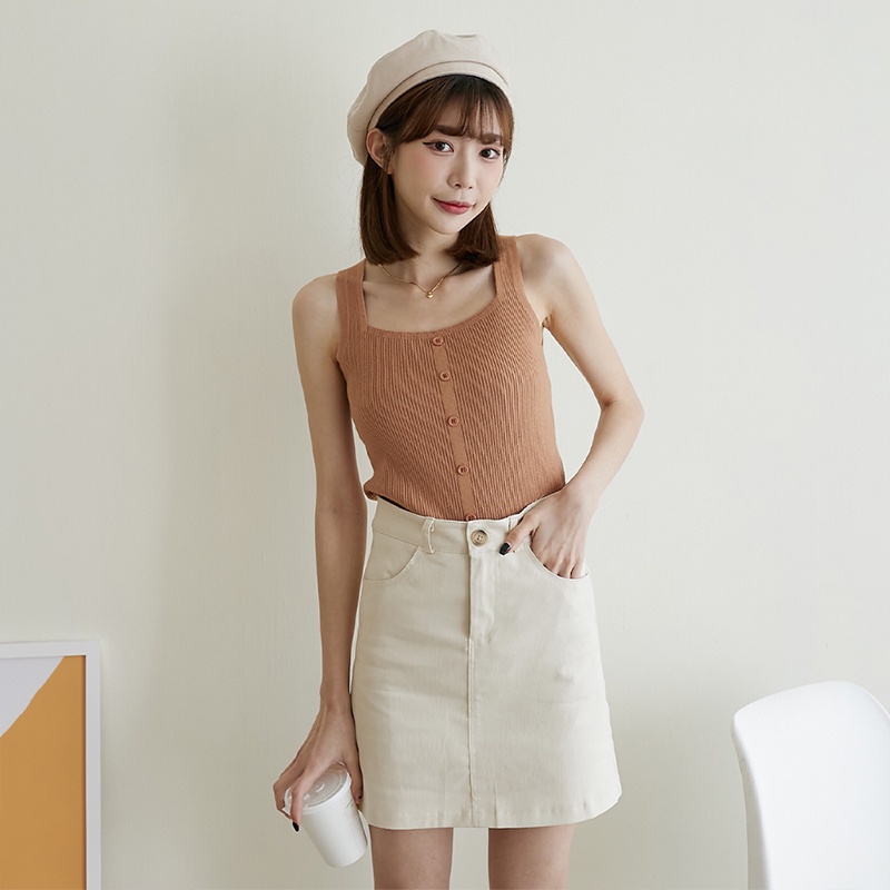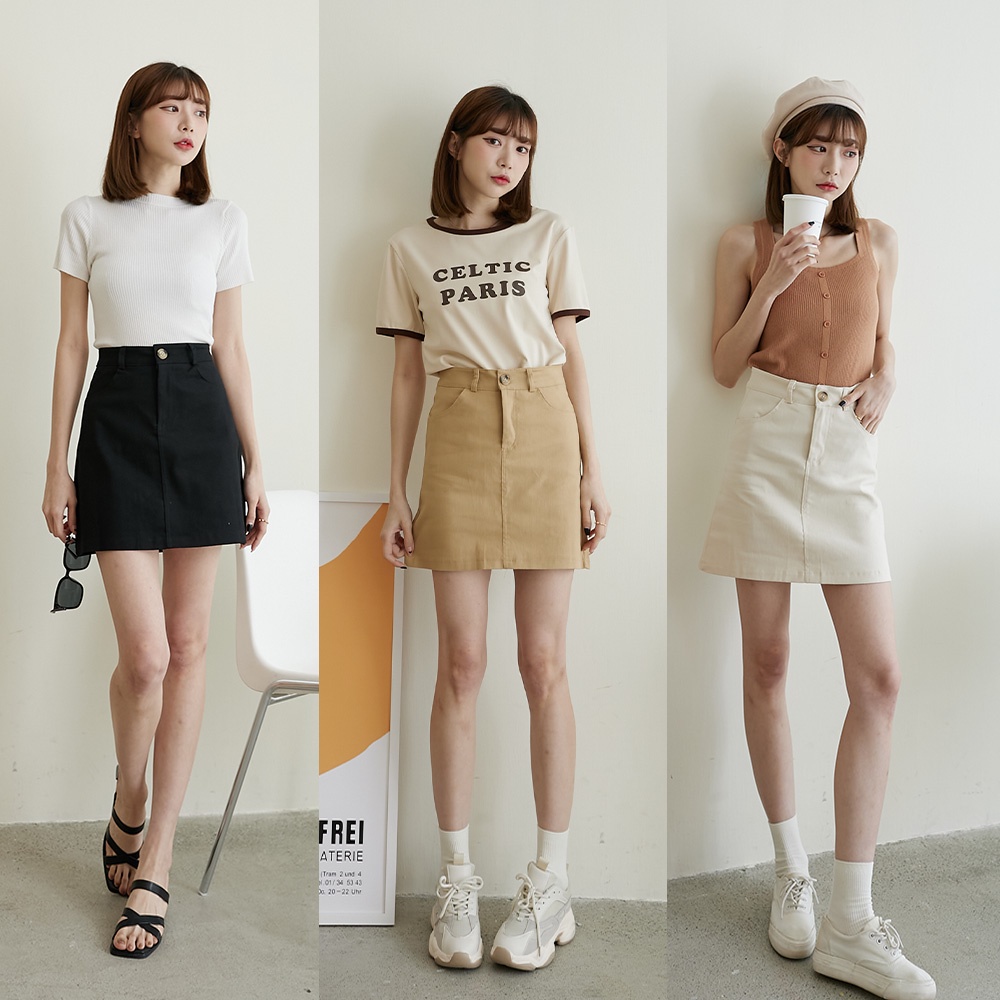 Space Picnic|琥珀釦挺料短裙-3色【C22043012】