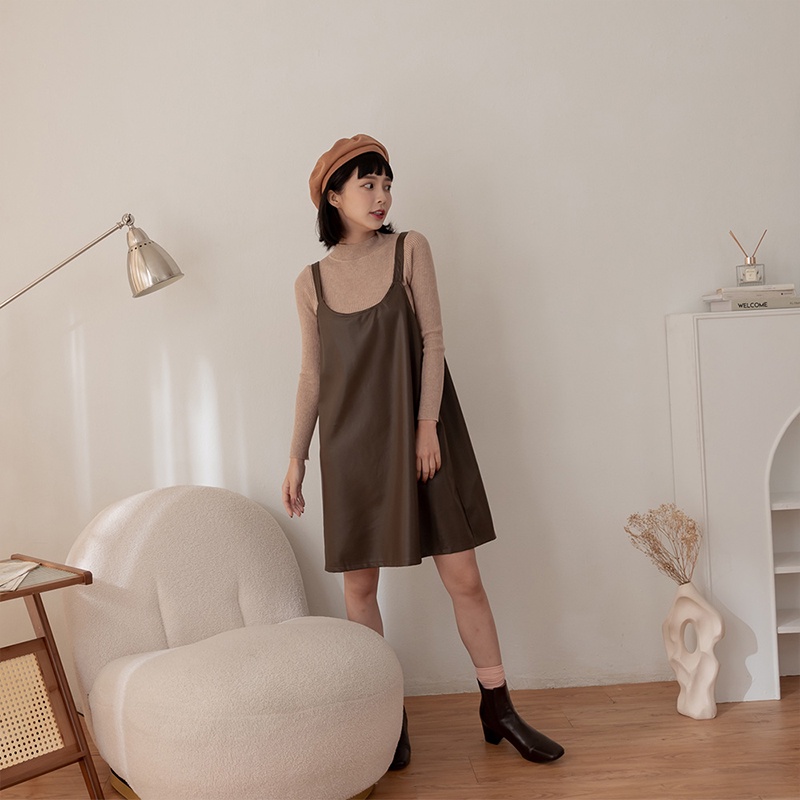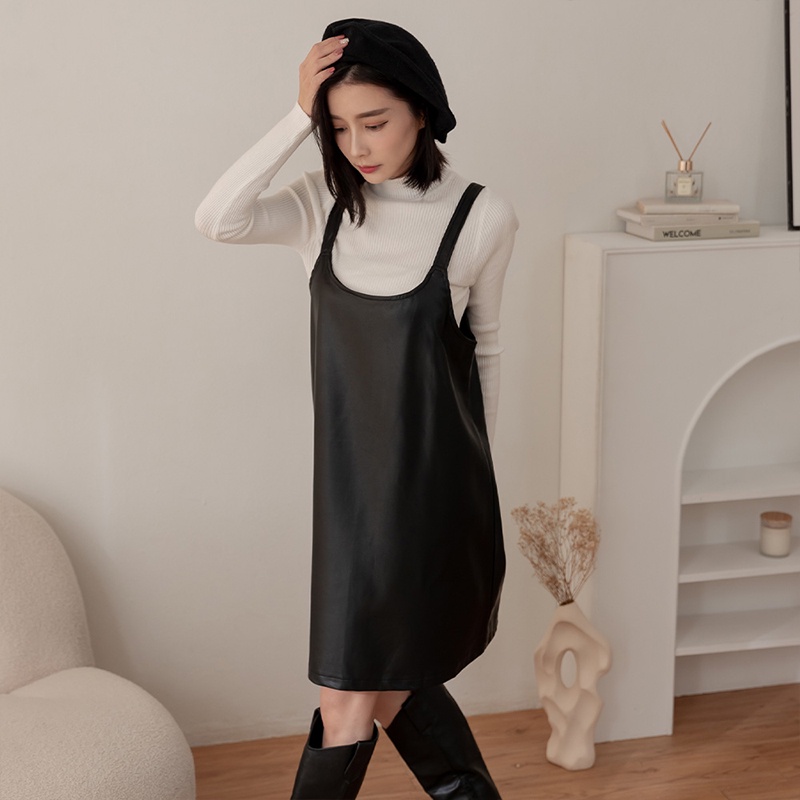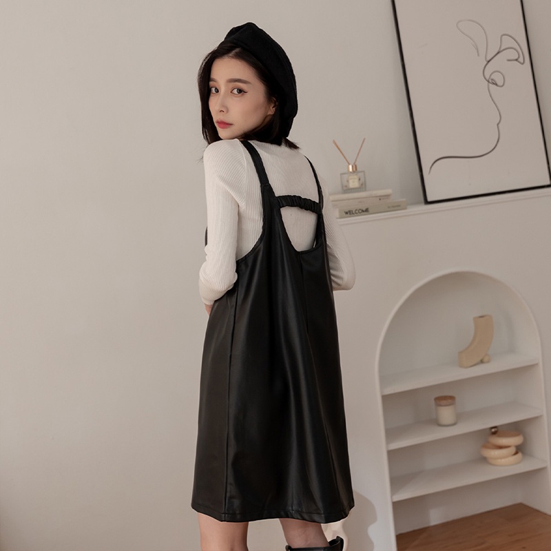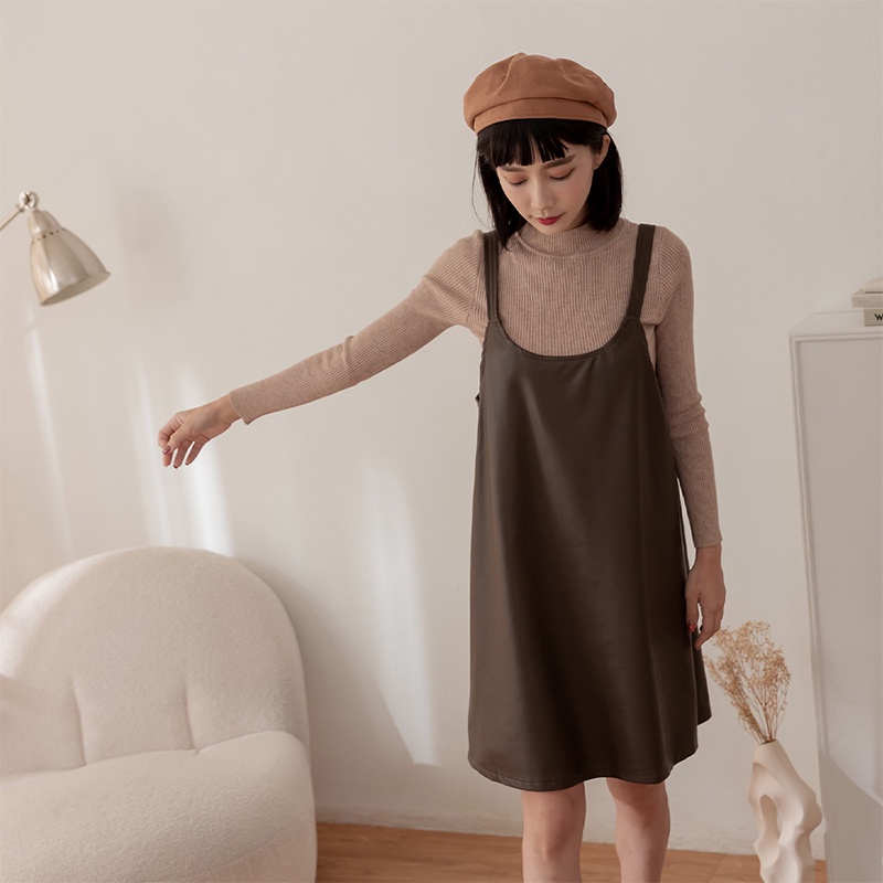 Space Picnic|兩件式-針織上衣+皮背心洋裝-2色【C22091009】