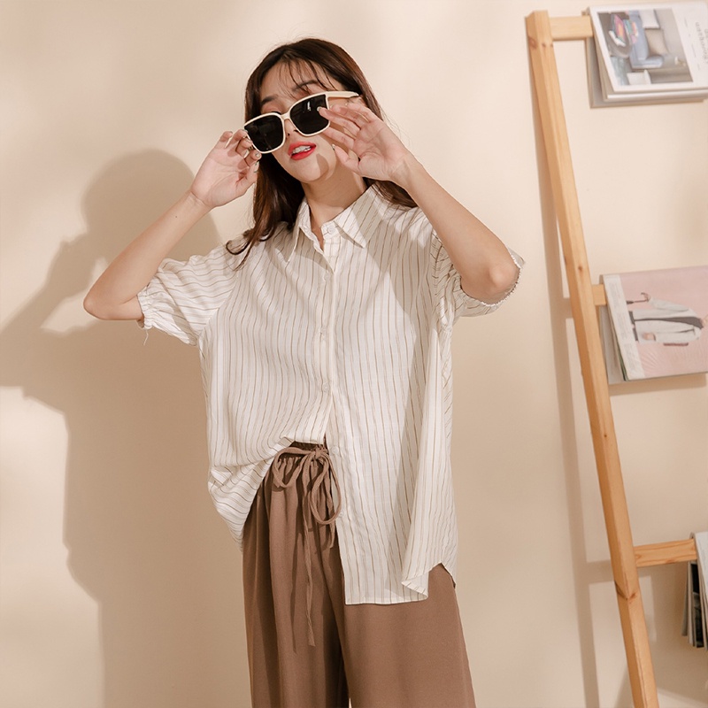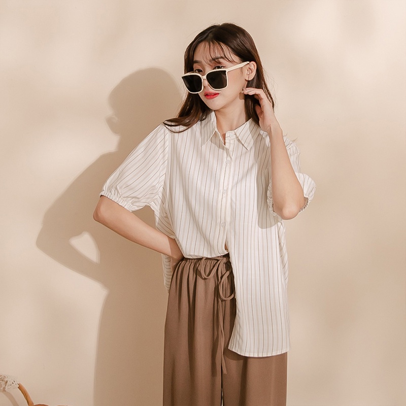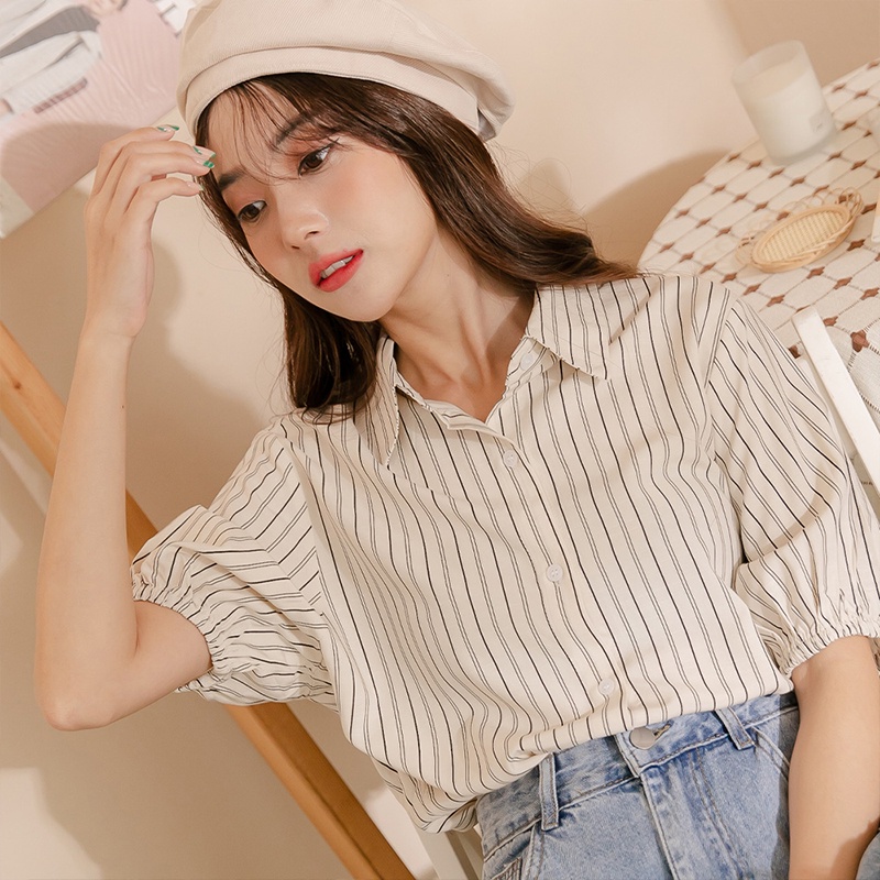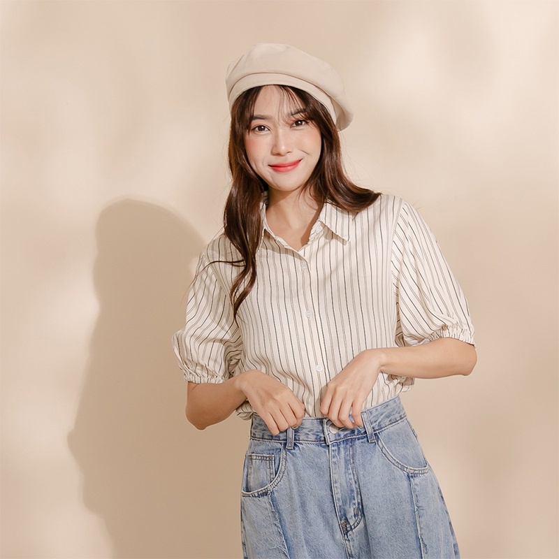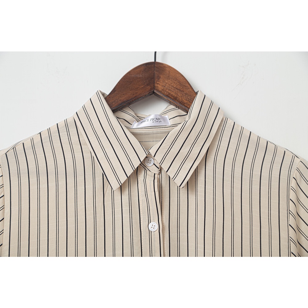 Space Picnic|粗細條縮口短襯衫-2色【C22041004】