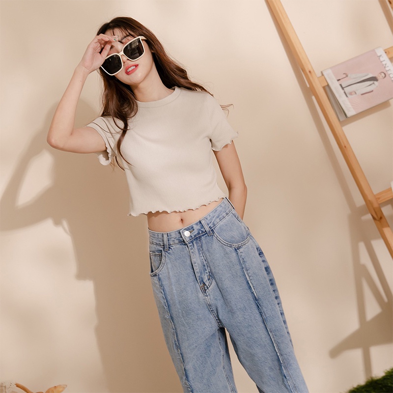 Space Picnic|抽鬚中線牛仔寬褲【C22031068】