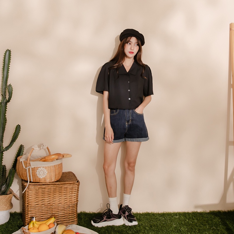 Space Picnic|大片領滑料短版襯衫-5色【C22041010】