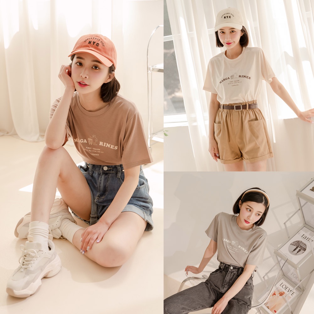 Space Picnic|正韓-小熊字母短袖上衣-3色【K22022005】
