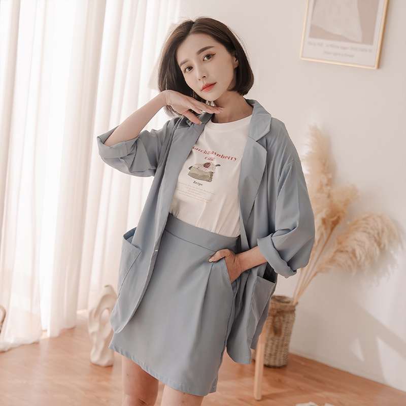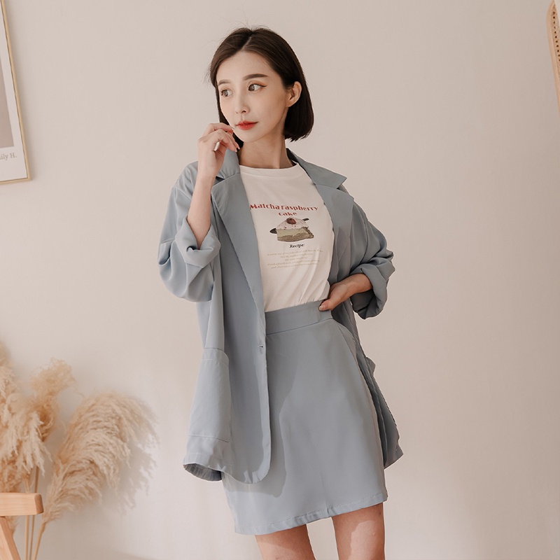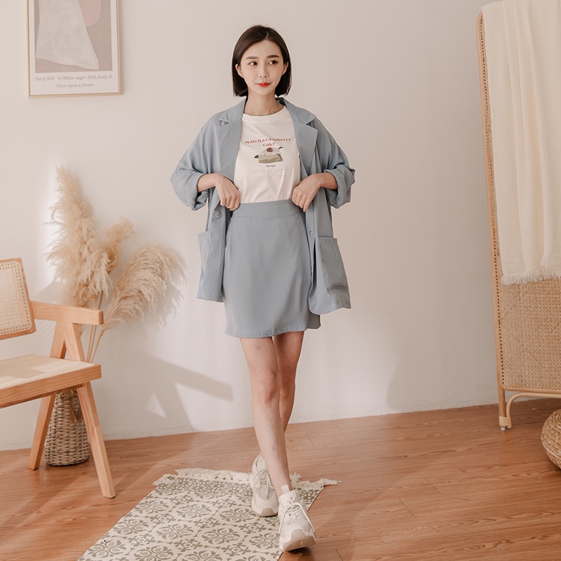 Space Picnic|兩件式-極薄滑料西外+短裙-3色【C22061040】