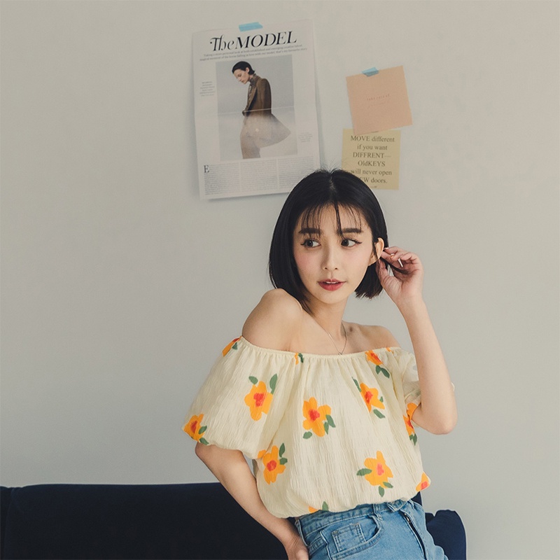 Space Picnic|鬆緊領花朵短上衣-2色【C22041057】