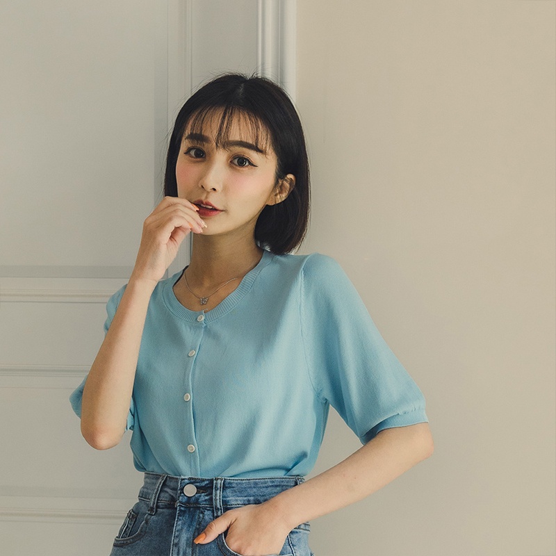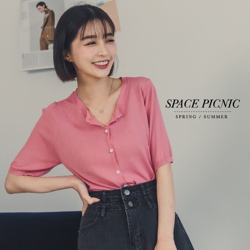 Space Picnic|薄針織排釦短袖上衣-4色【C22041060】