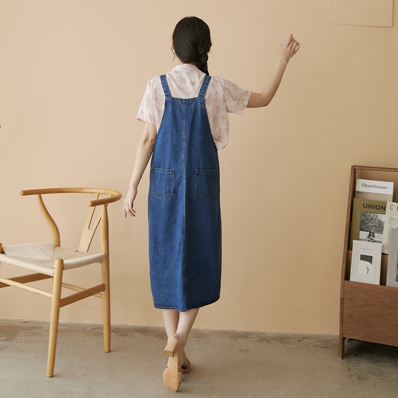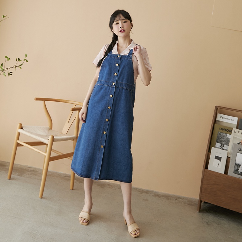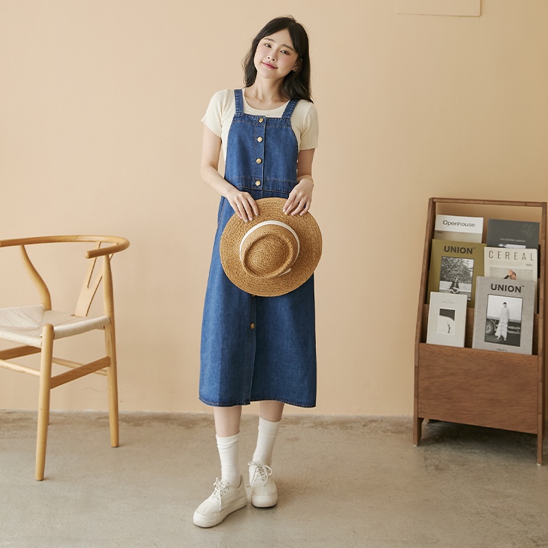 Space Picnic|排釦牛仔吊帶洋裝-1色【C22031049】