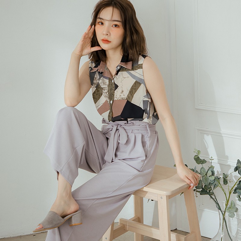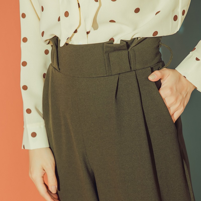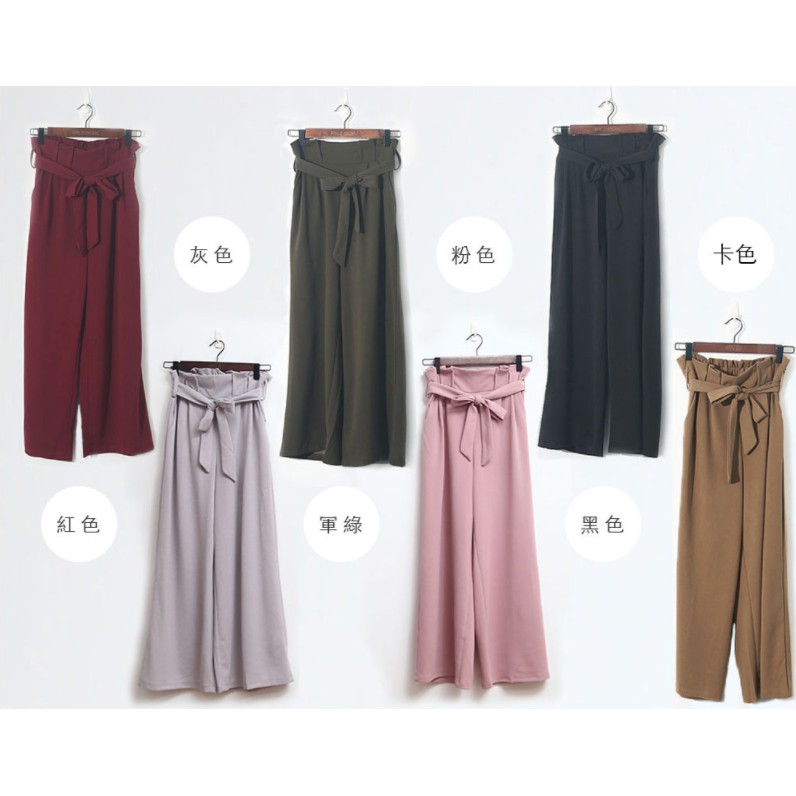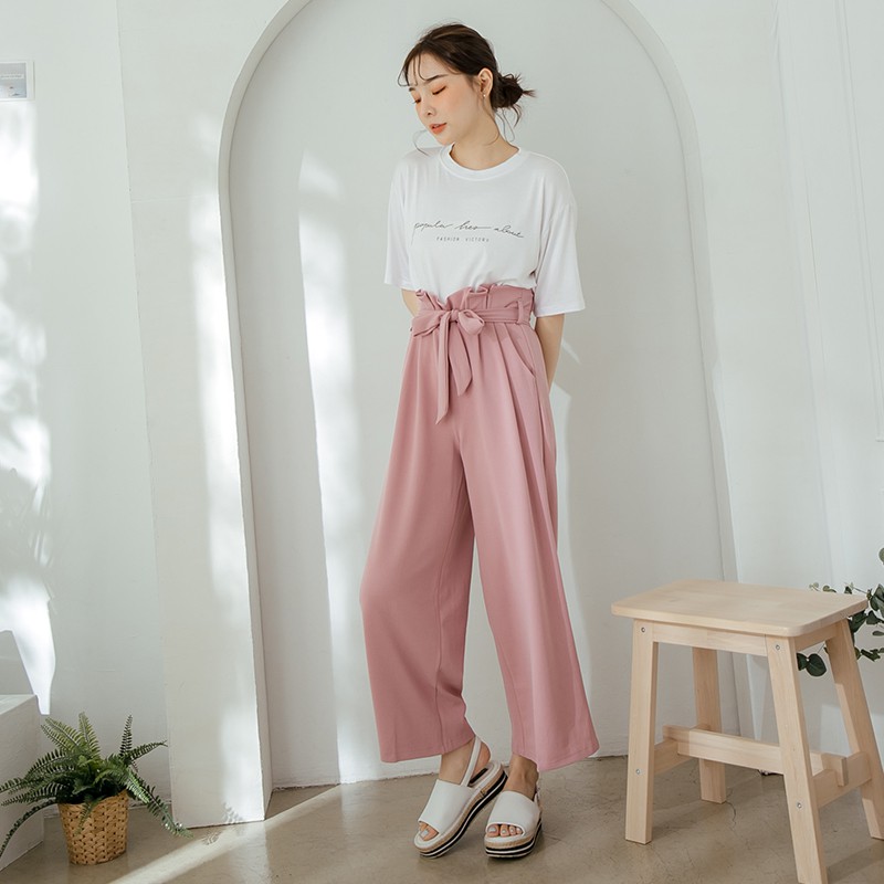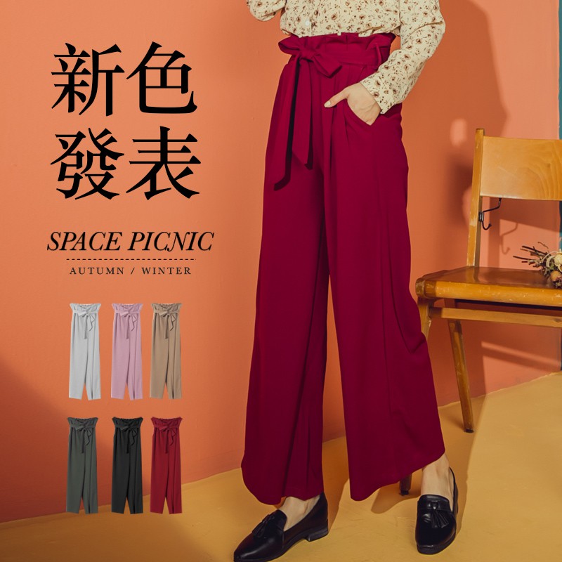 Space Picnic|素面打折腰鬆緊寬褲-附綁帶【C18112072】