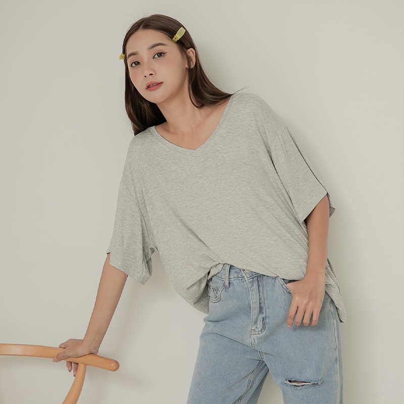 Space Picnic|寬鬆彈性V領短袖T-5色【C22081017】