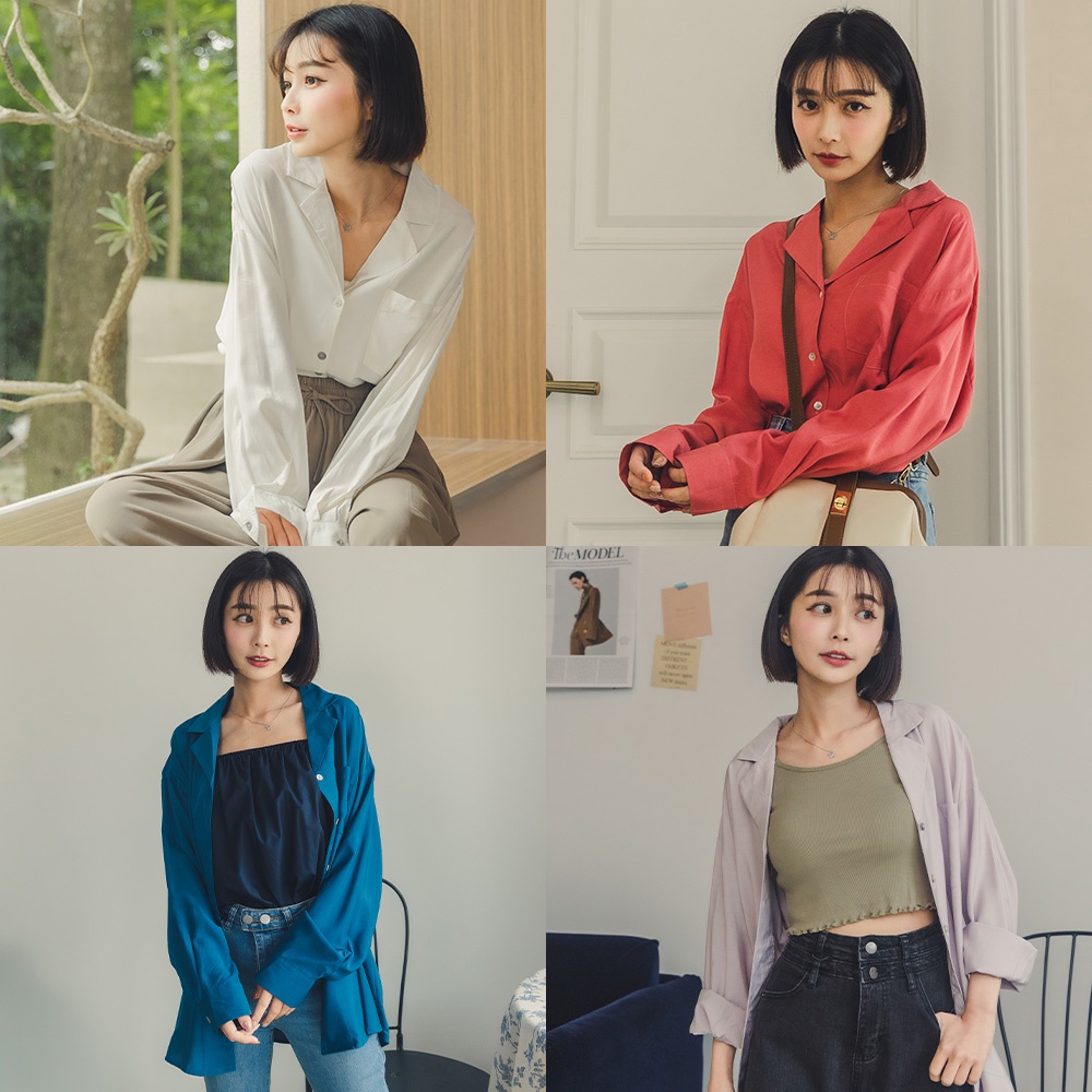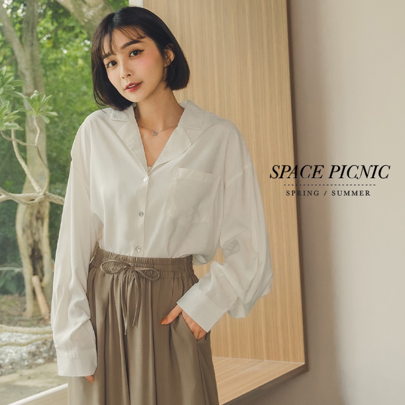 Space Picnic|素面劍領寬版長襯衫-4色【C22041003】