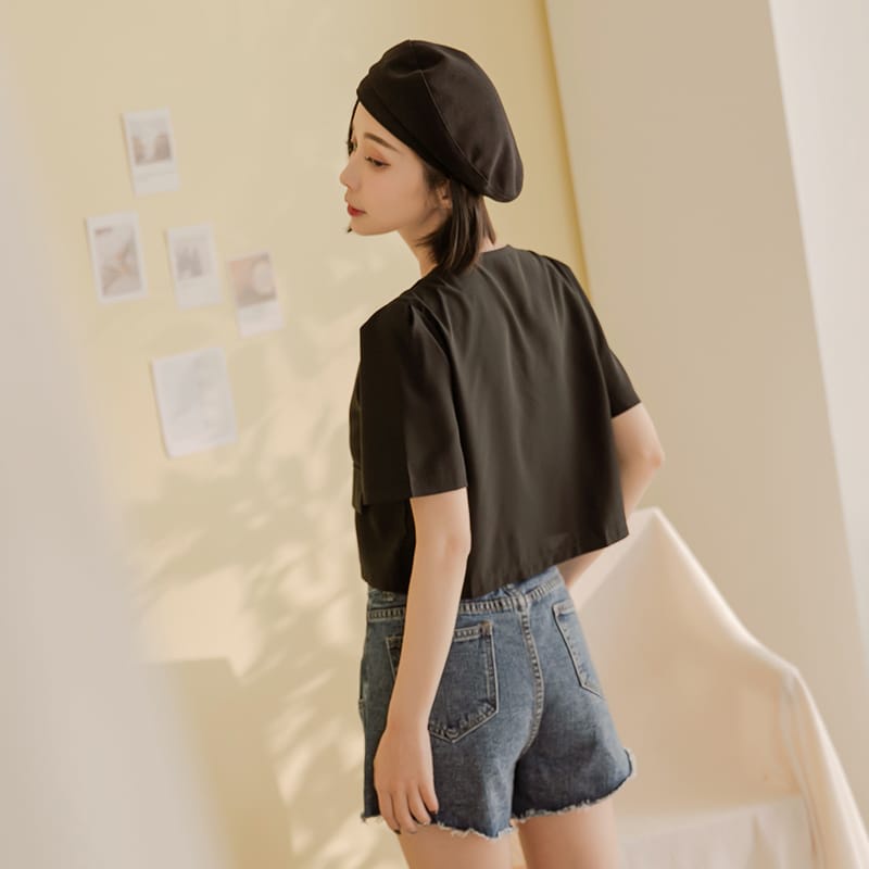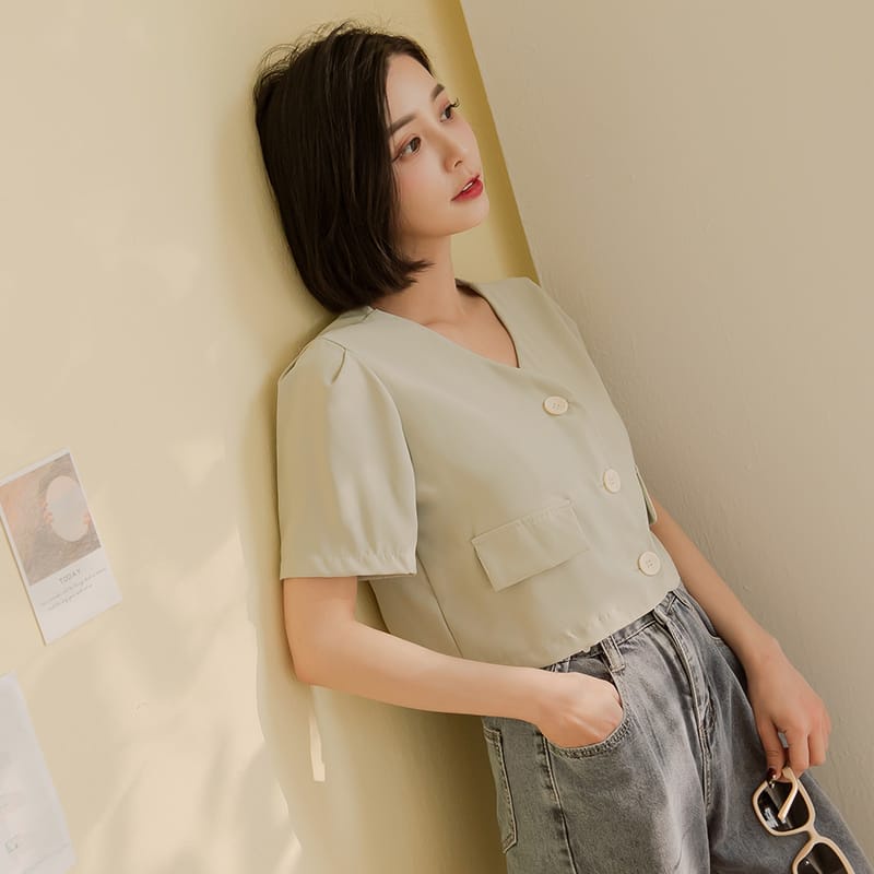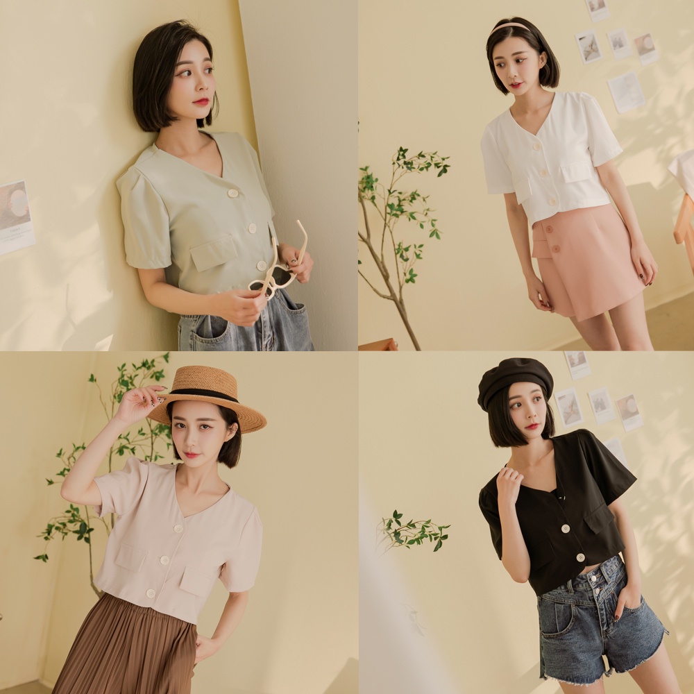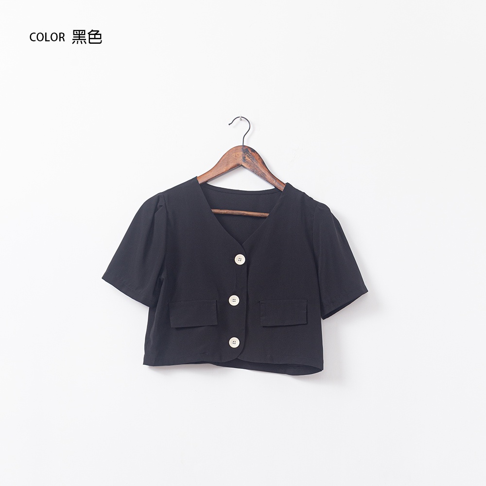 Space Picnic|V領三釦滑料襯衫-4色【C22021009】