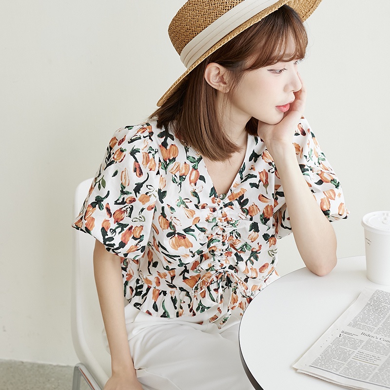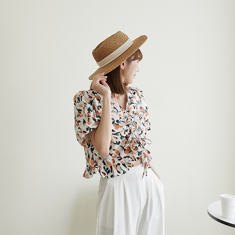 Space Picnic|鬱金香V領抽繩上衣-2色【C22043054】