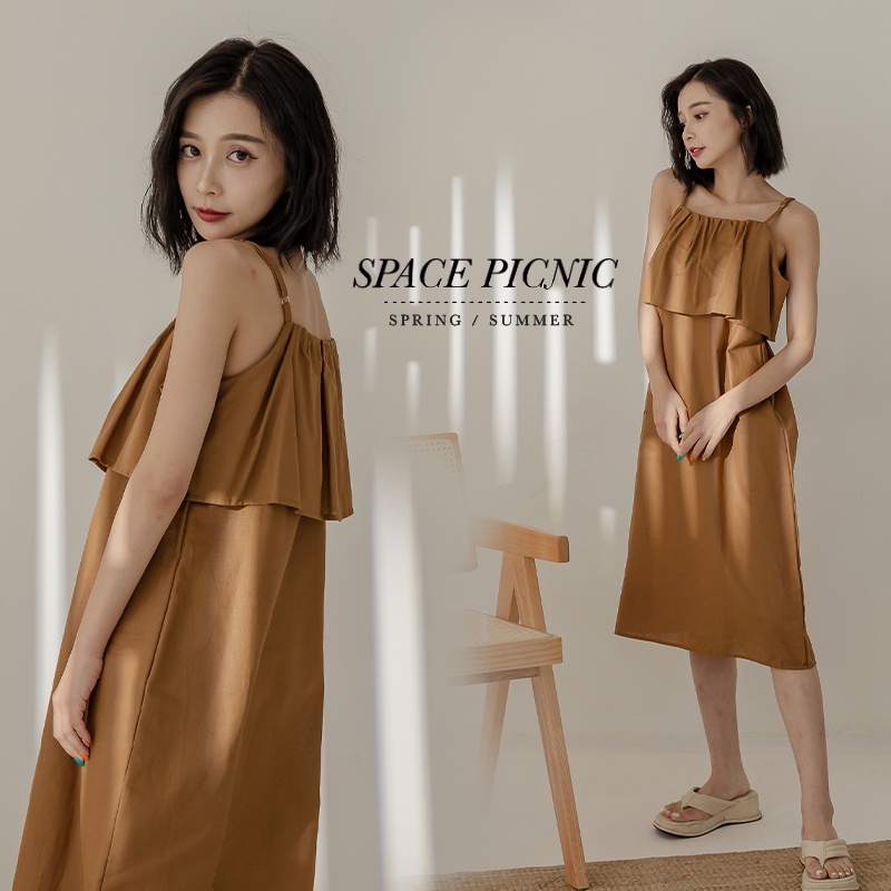 Space Picnic|荷葉細肩洋裝-3色【C22081002】