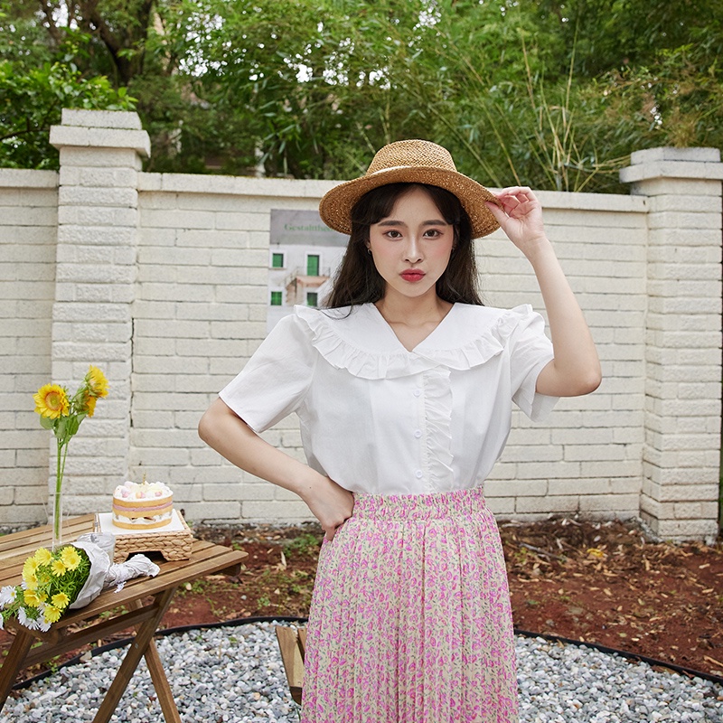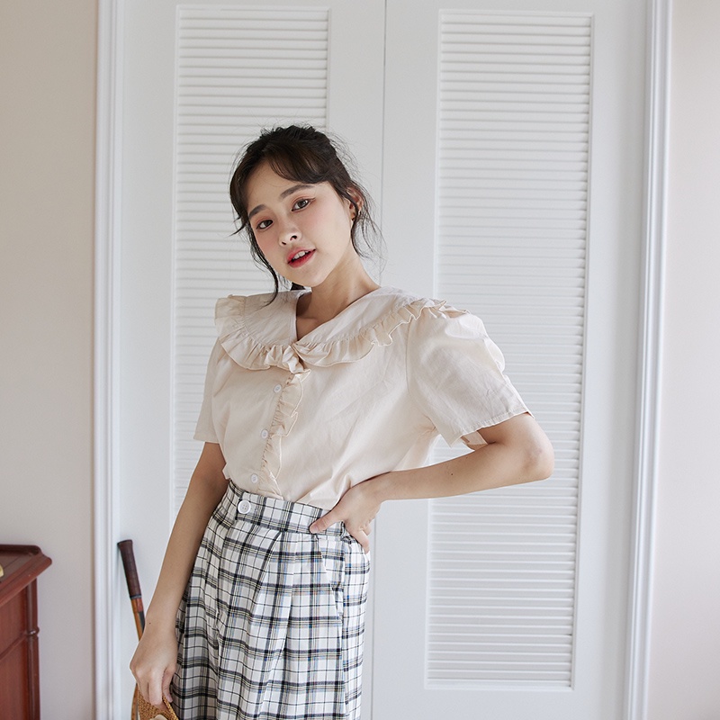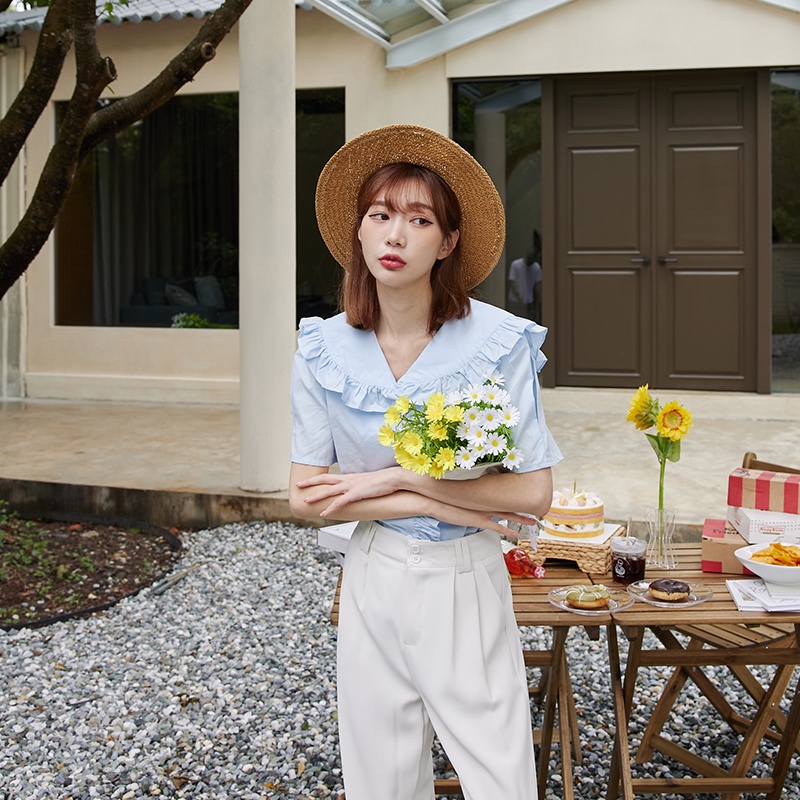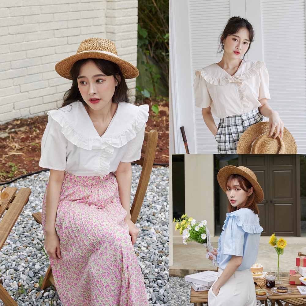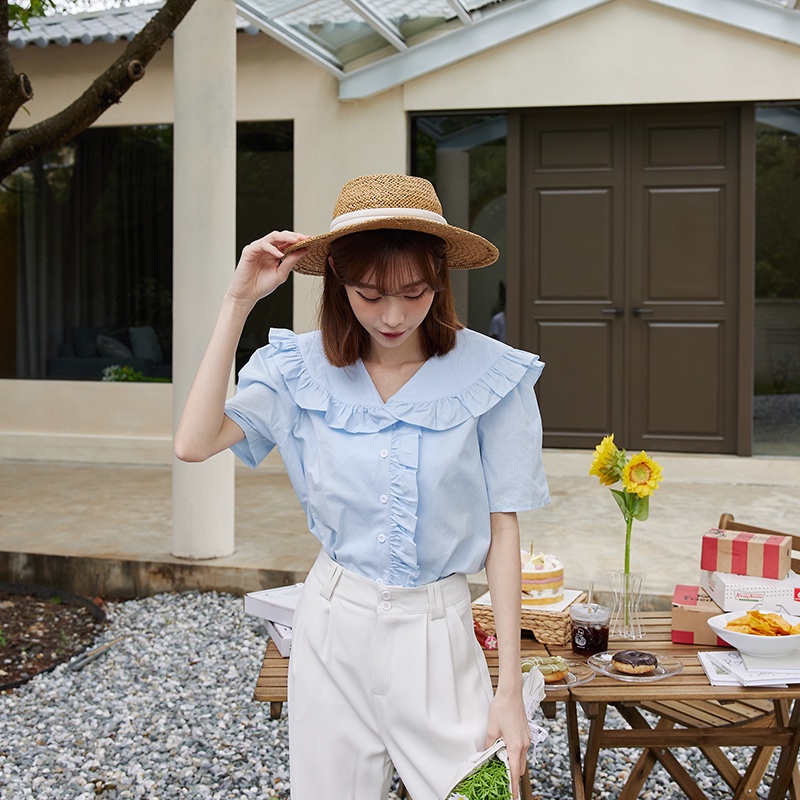 Space Picnic|荷葉滾邊短襯衫-3色【C22051045】