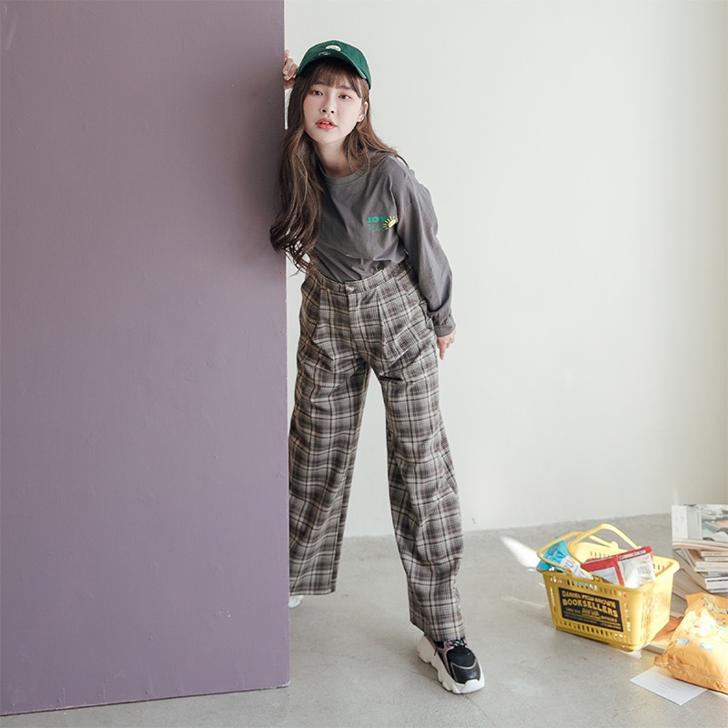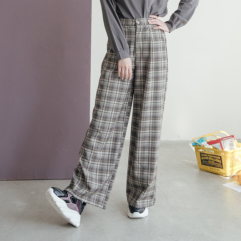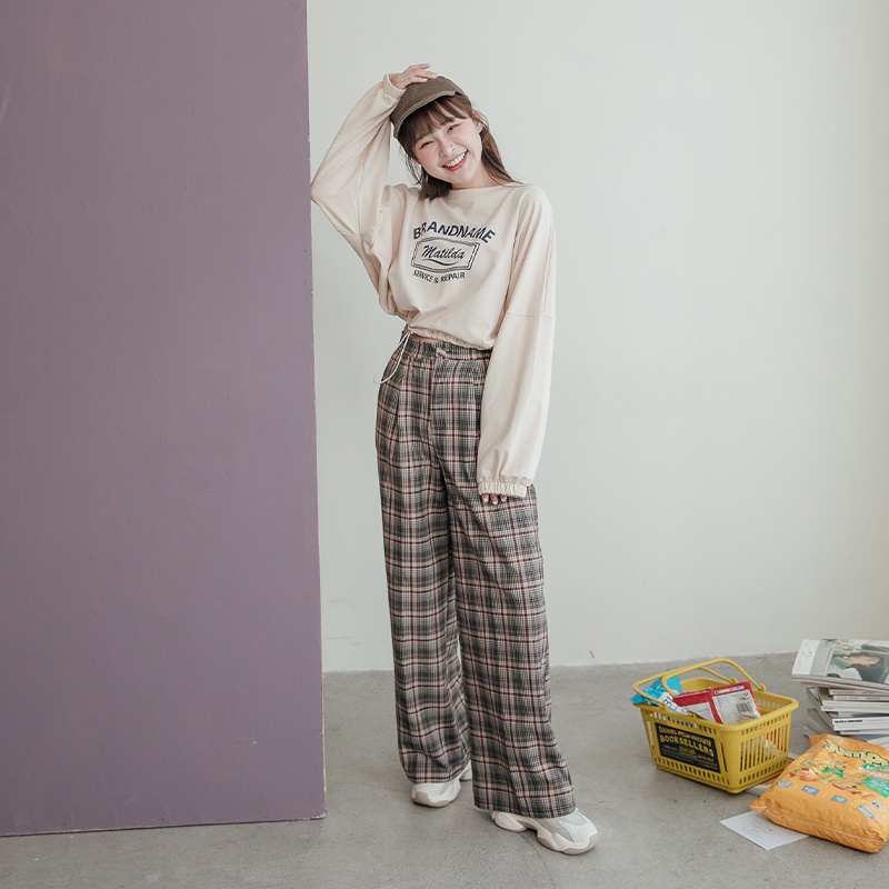 Space Picnic|格紋鬆緊直筒寬褲-2色【C22085021】