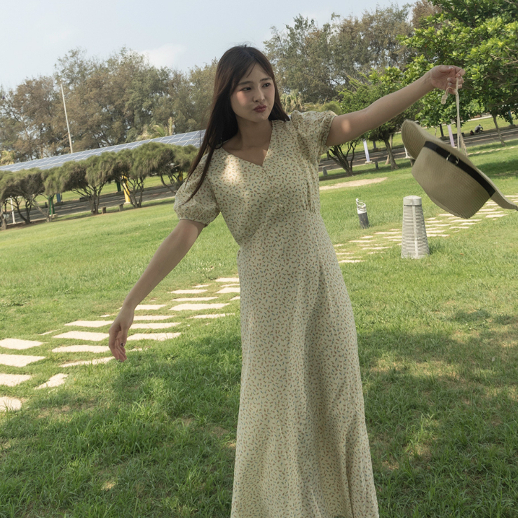 Space Picnic|V領綁帶碎花洋裝-2色【C23051087】