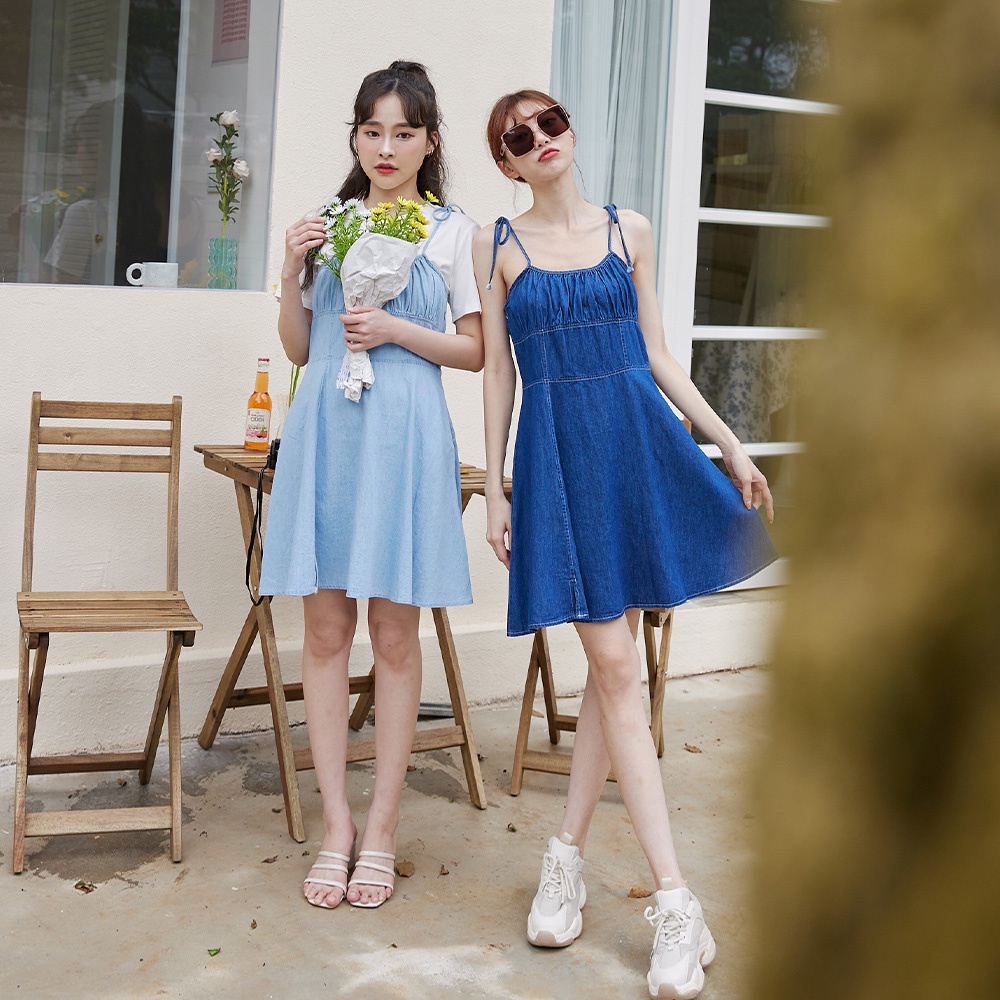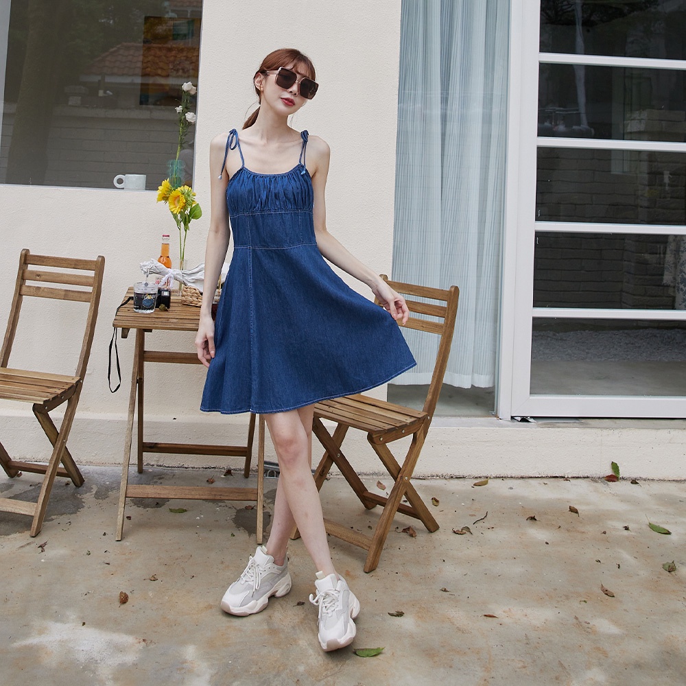 Space Picnic|綁帶細肩牛仔洋裝-2色【C22043104】