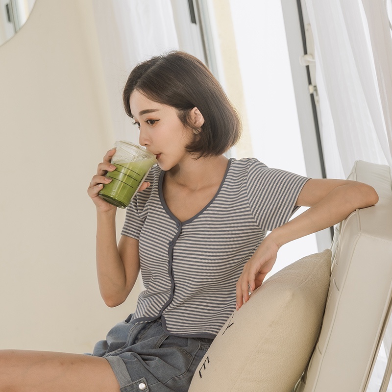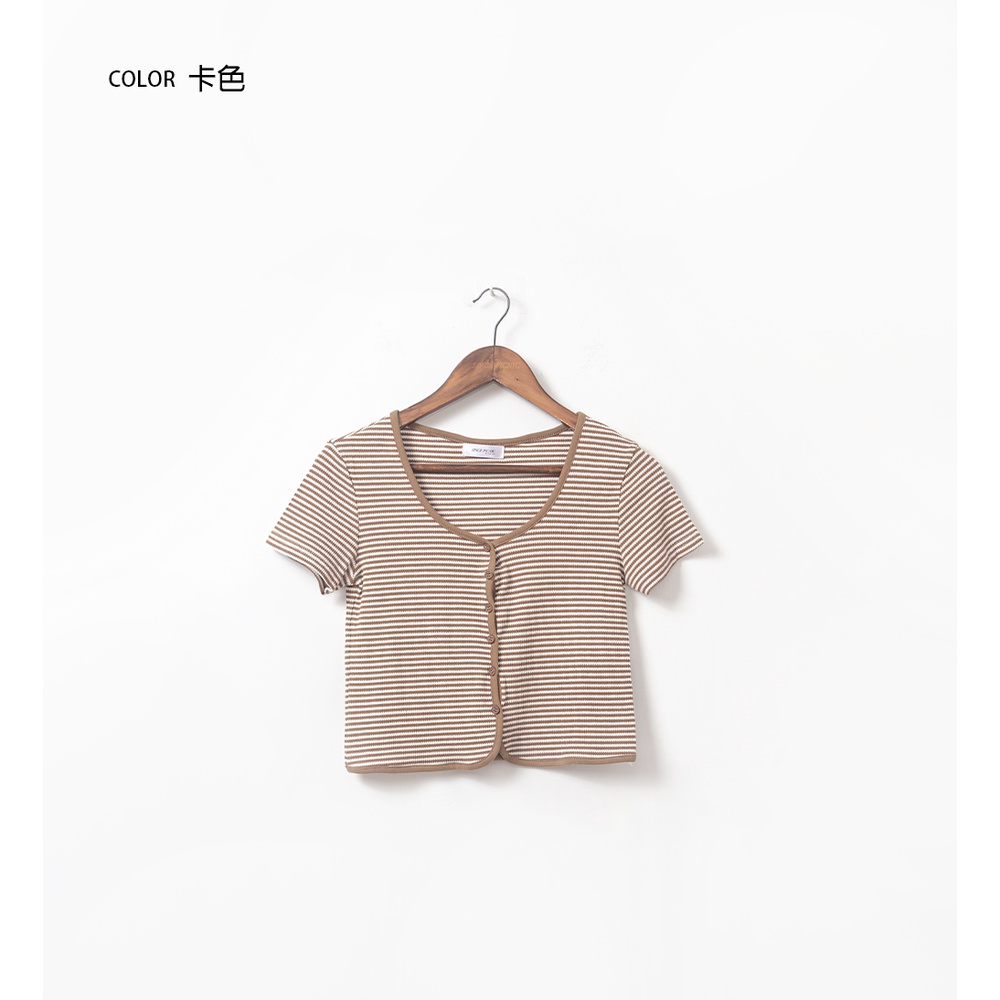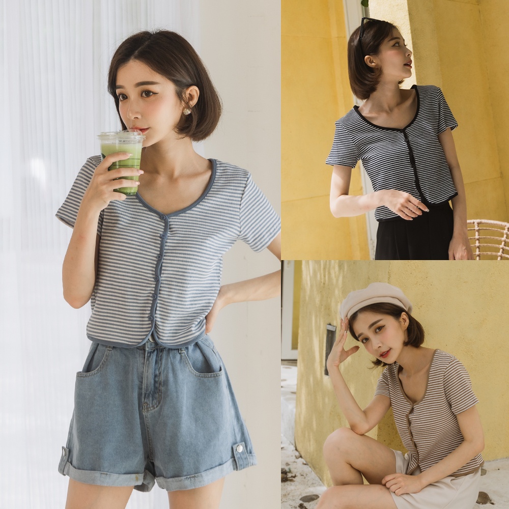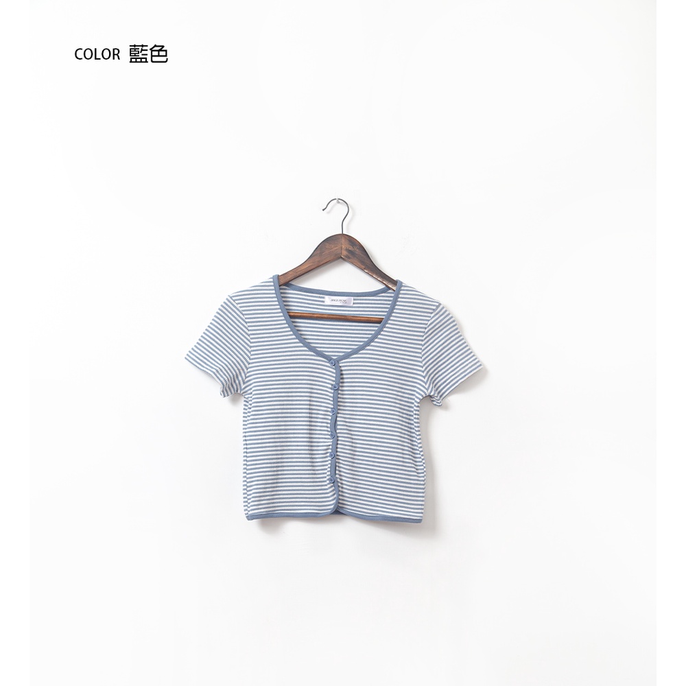 Space Picnic|條紋V領排釦上衣-4色【C22061054】