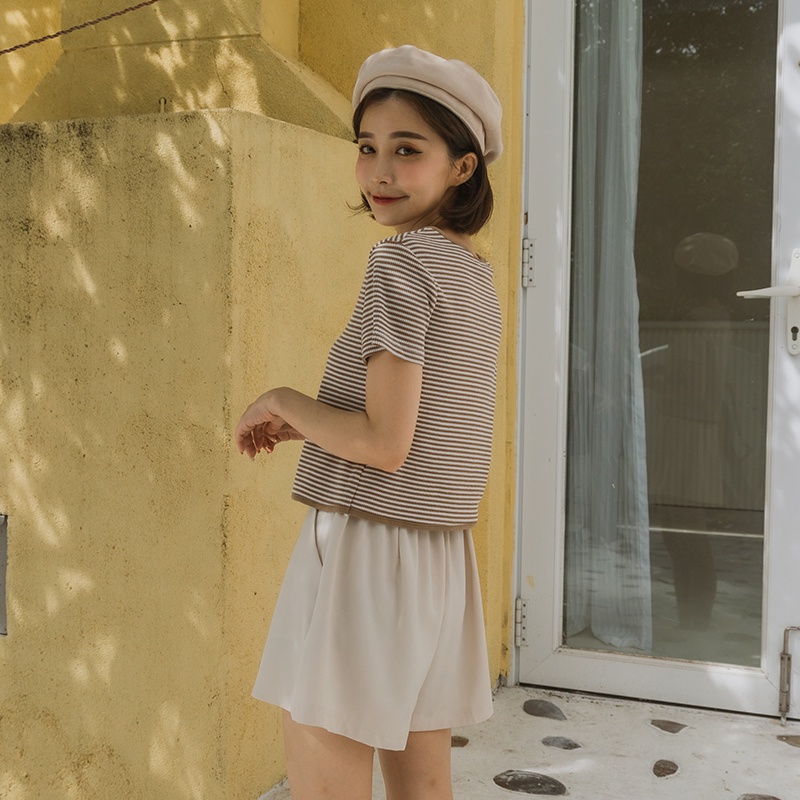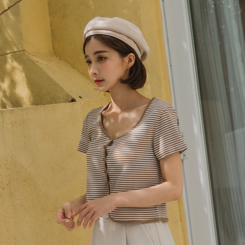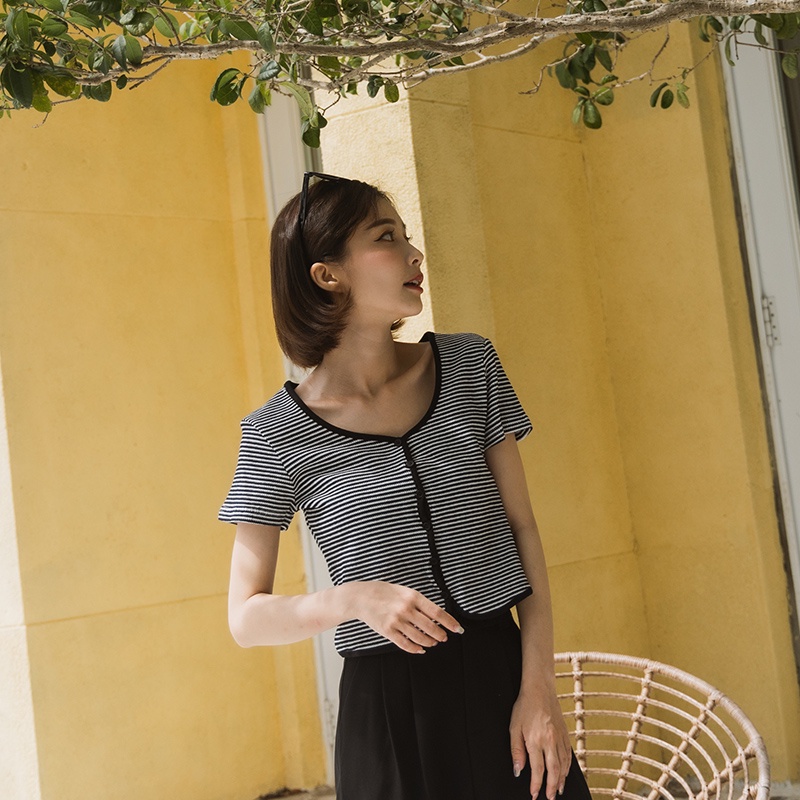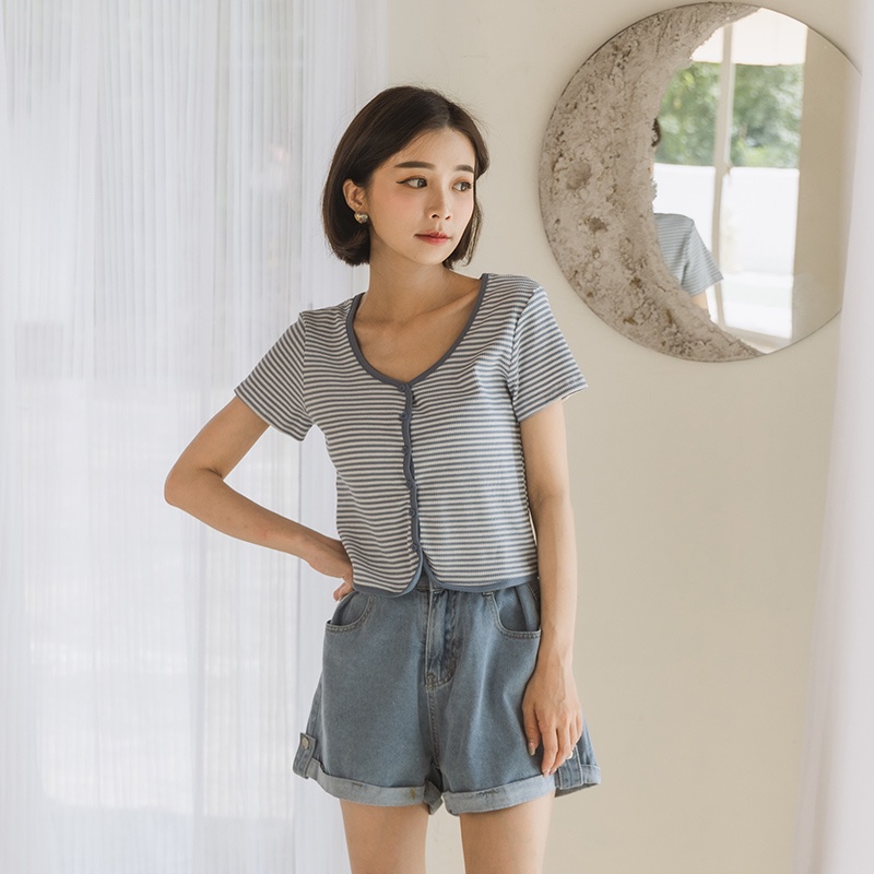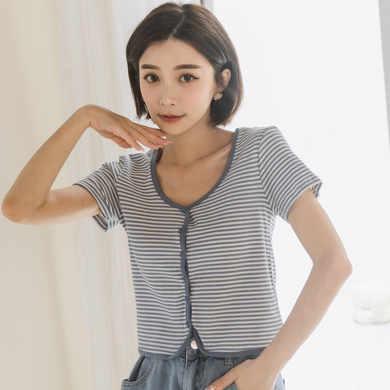 Space Picnic|條紋V領排釦上衣-4色【C22061054】