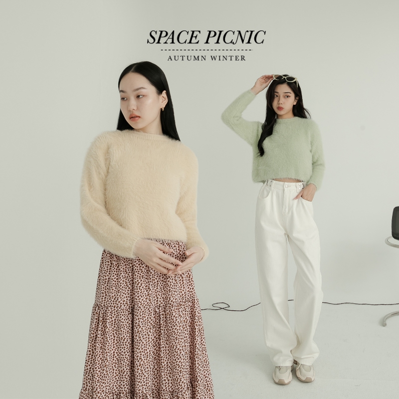 Space Picnic|圓領水貂毛上衣-4色【C23101085】