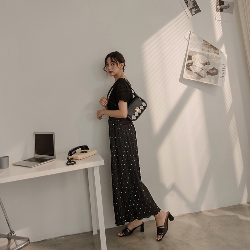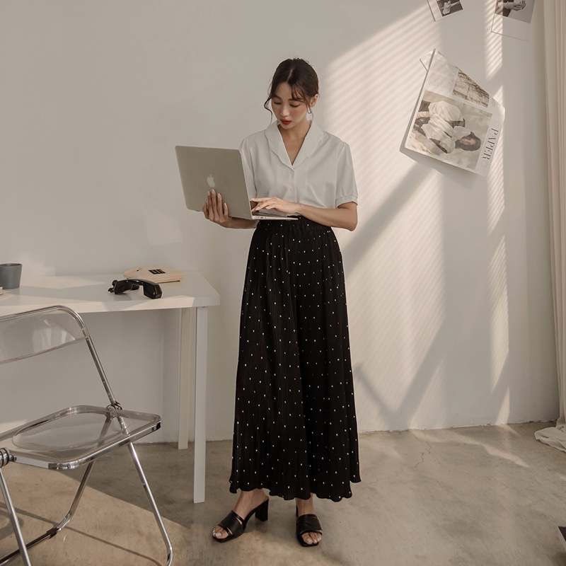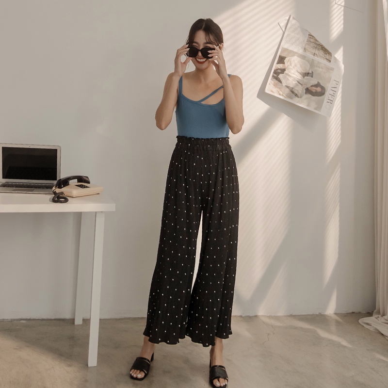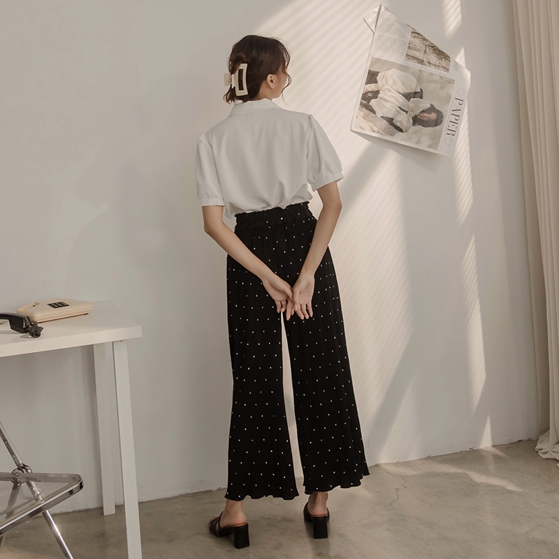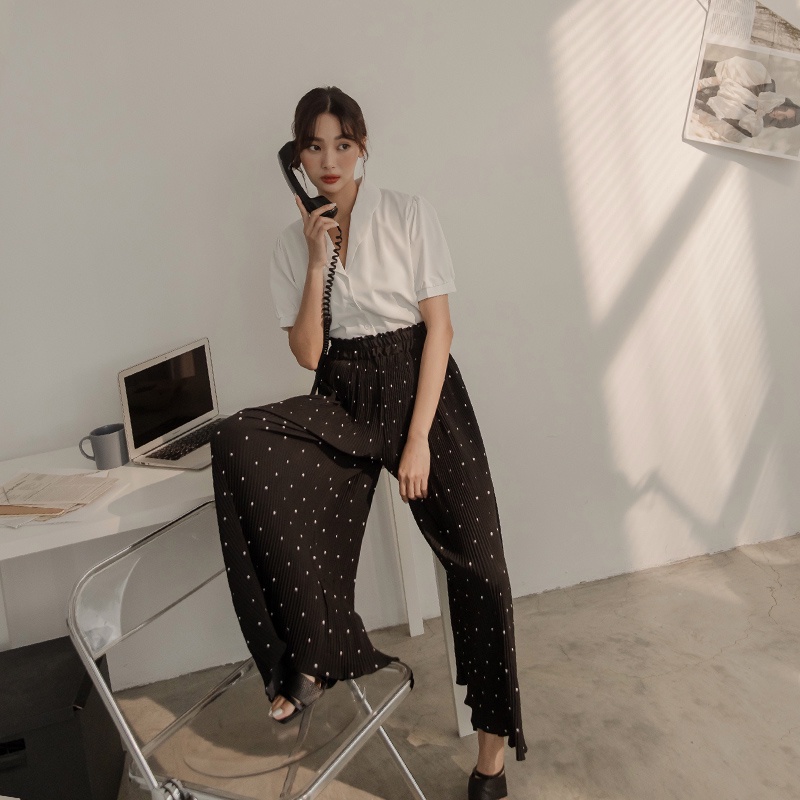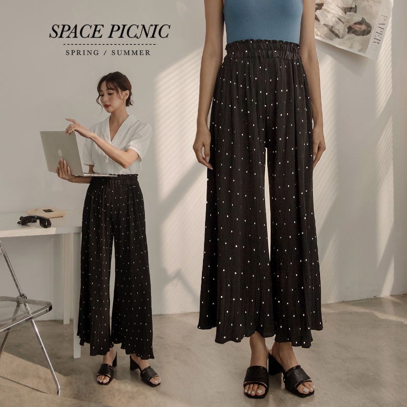 Space Picnic|細百摺點點雪紡寬褲-1色【C22043085】